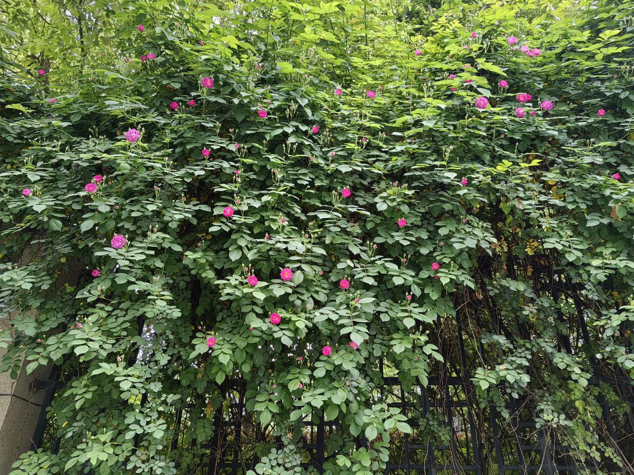 我感觉蔷薇这种花还挺省心的。不像有些花,得天天盯着浇水施肥。它好像不用怎么特意打理,自己就能爬满墙,长得特别旺。可能跟它本身习性有关吧,耐晒也耐寒,对土也不怎么挑,看着就皮实。就是不知道如果雨水太多,会不会容易烂根,这点我还不太确定。