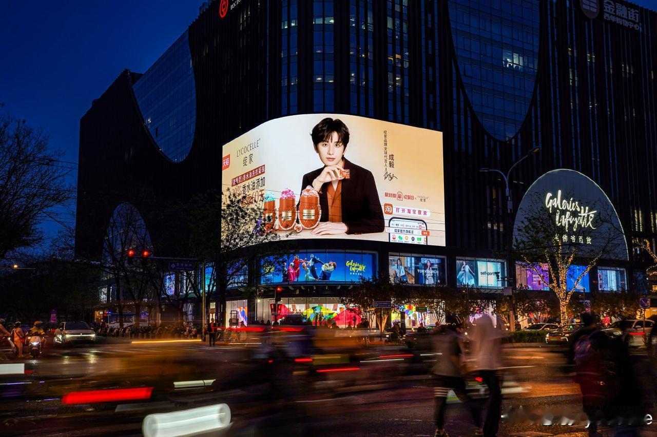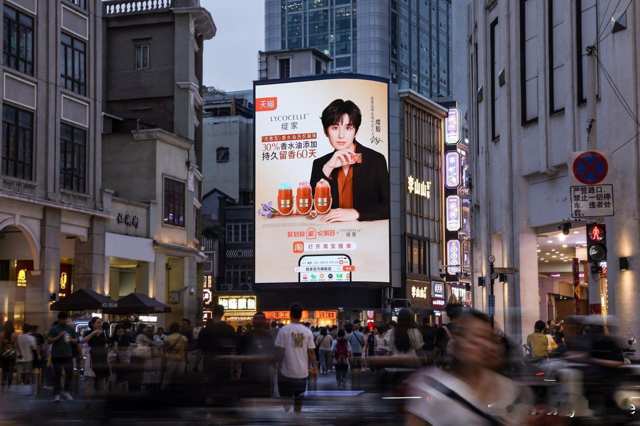 而成毅这张脸也太适合大屏幕了吧!五官舒展大气,轮廓干净利落,镜头怼脸拍都完全无死角,无论是白天还是夜晚,都能精准抓住路人的目光,自带“被偏爱”的温柔治愈感,和绽家的调性适配度直接拉满!