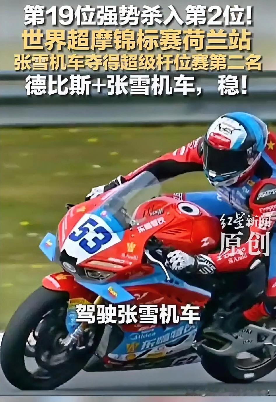 太牛了!从第19名到第2,荷兰站超级杆位赛,张雪机车表现非常牛!这个成绩完全