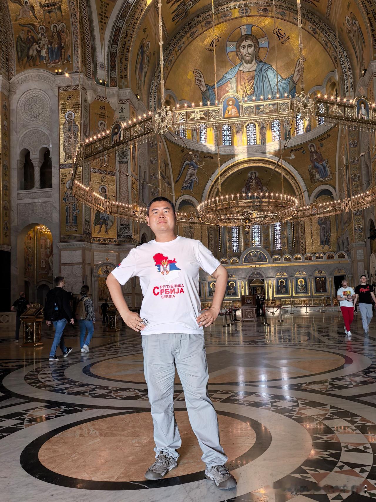 下午,在贝尔格莱德市区,走进圣萨瓦大教堂,巴尔干半岛规模最大的东正教教堂。蔚蓝的