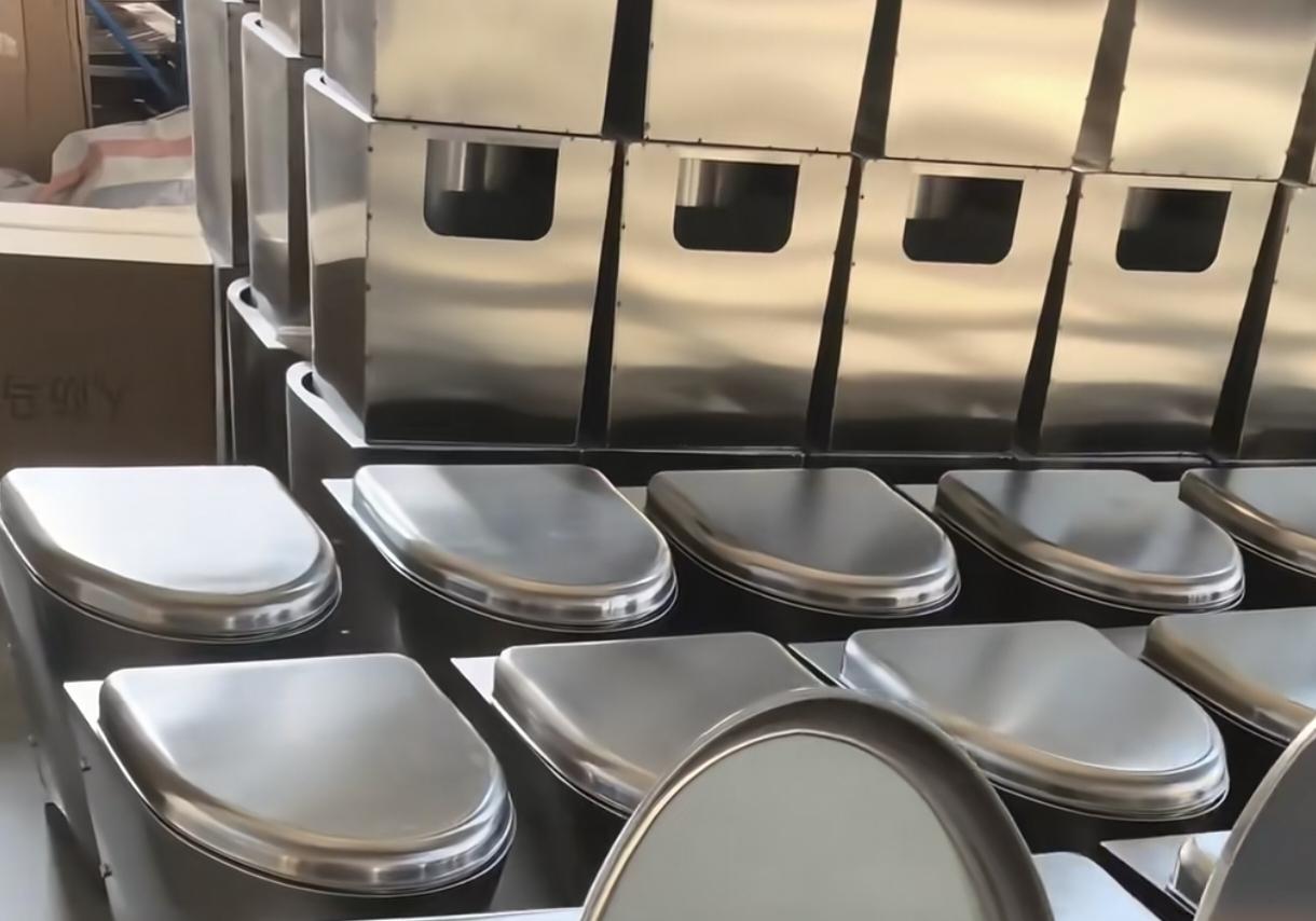 304不锈钢的坐便器只在火车上看过,那种比较厉害,冲水压力大。冬天冻屁股,给座垫喷涂上 PTFE ,防冻屁股。撒泡尿照照自己终于实现。不适合家庭使用,冷冰冰的,毫无情调与亮点。