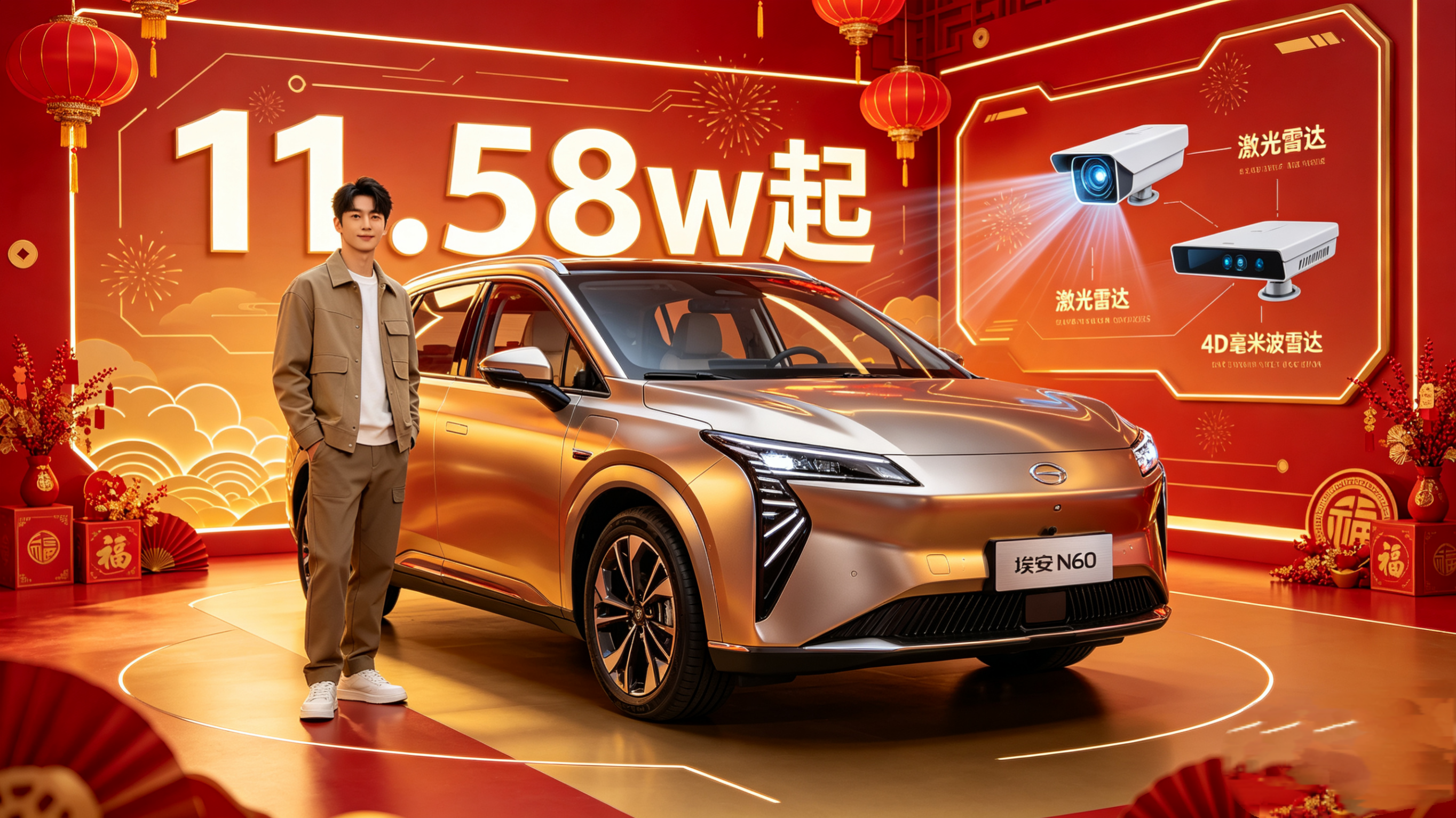 一提高阶智驾就要加价?埃安N60直接打破这一常规,预售11.58万起,激光雷达与4D毫米波雷达全系标配,诚意十足。