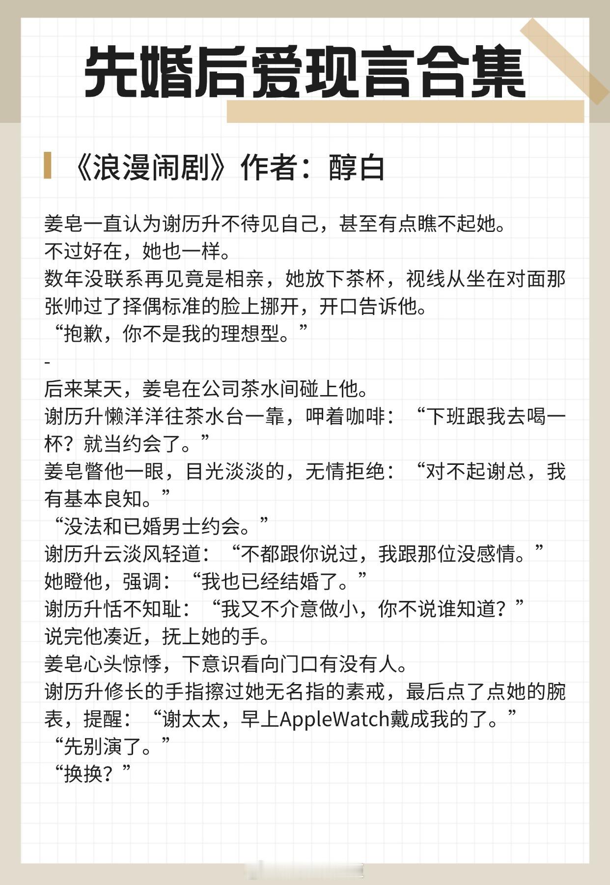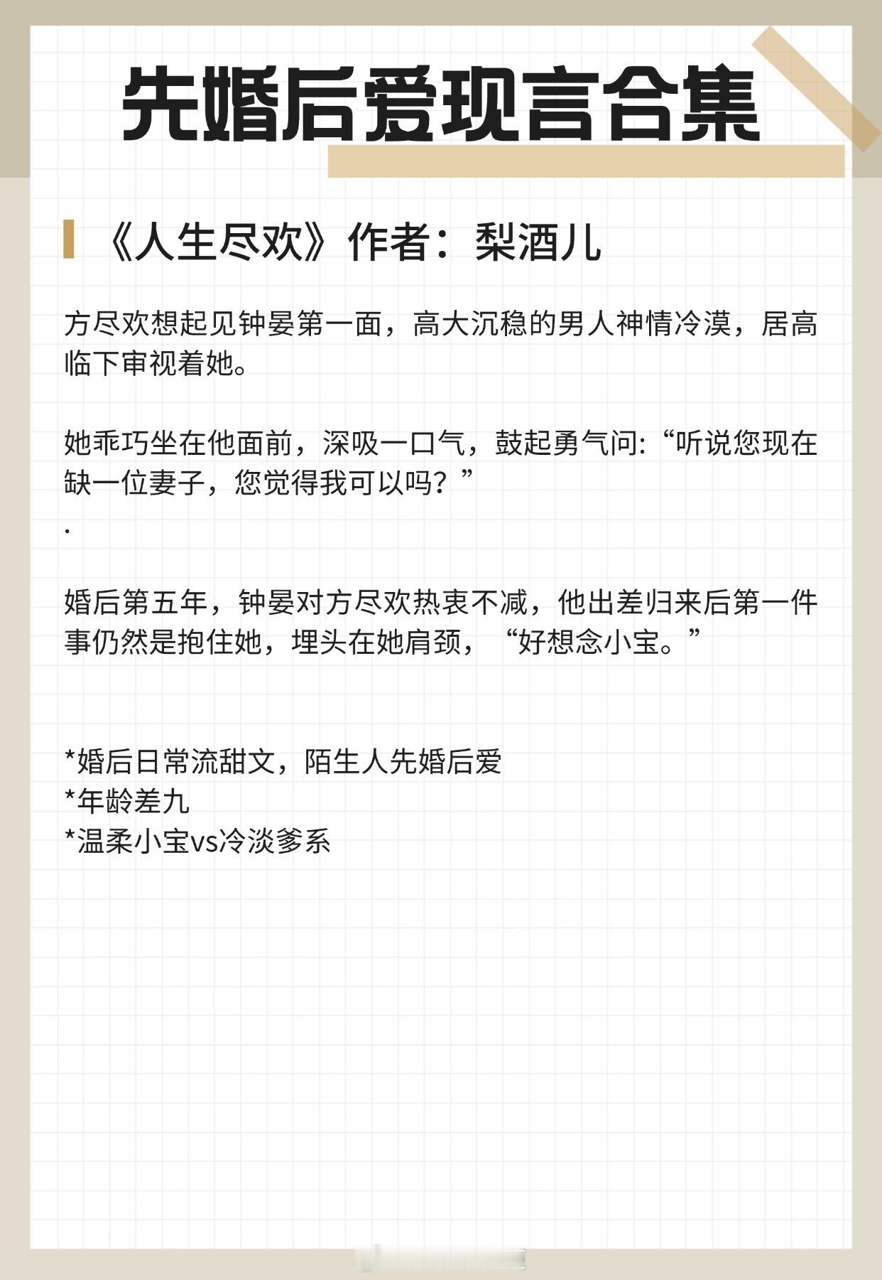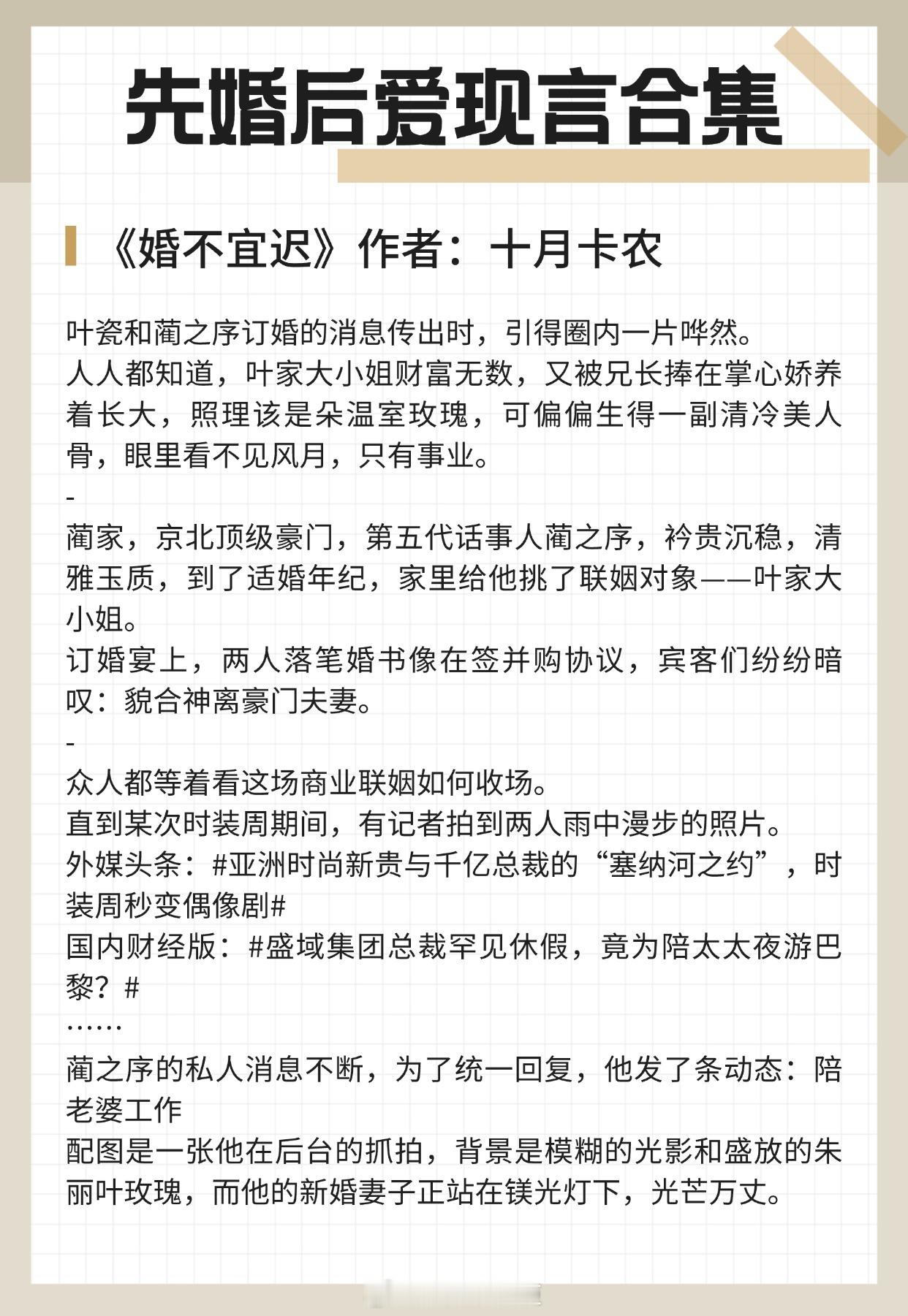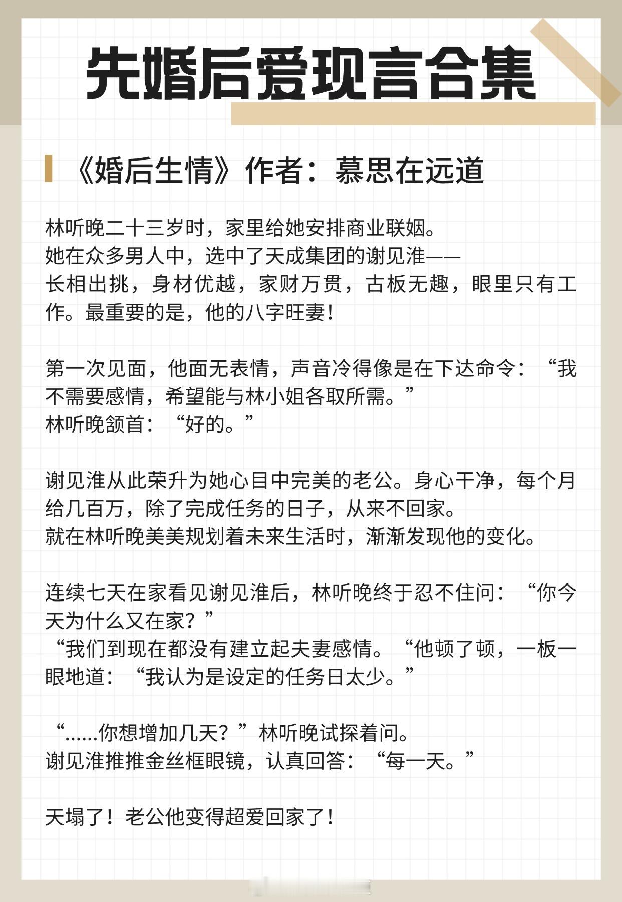 《钢铁森林 》作者:弃吴钩《婚后生情》作者:慕思在远道《浪漫闹剧》作者:醇白《婚不宜迟》作者:十月卡农《婚色撩人》作者:君莱《人生尽欢》作者:梨酒儿推文推文言情小说推荐