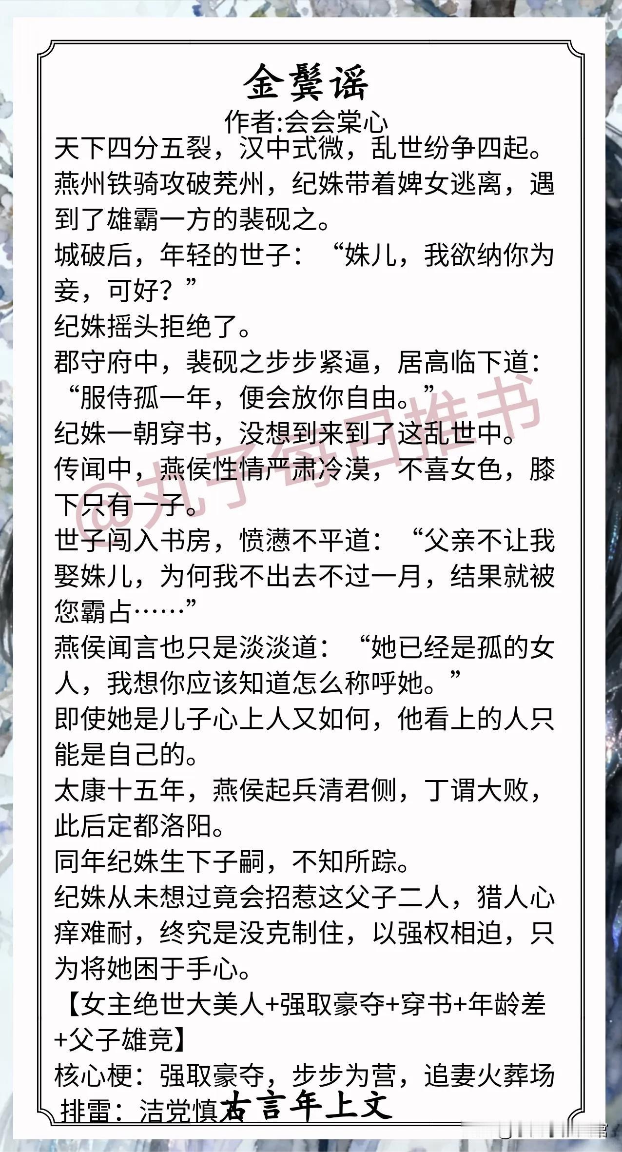 2.《金鬓谣》作者:会会棠心(绝色美人vs霸道枭雄,穿越,强取豪夺,父子雄竞)