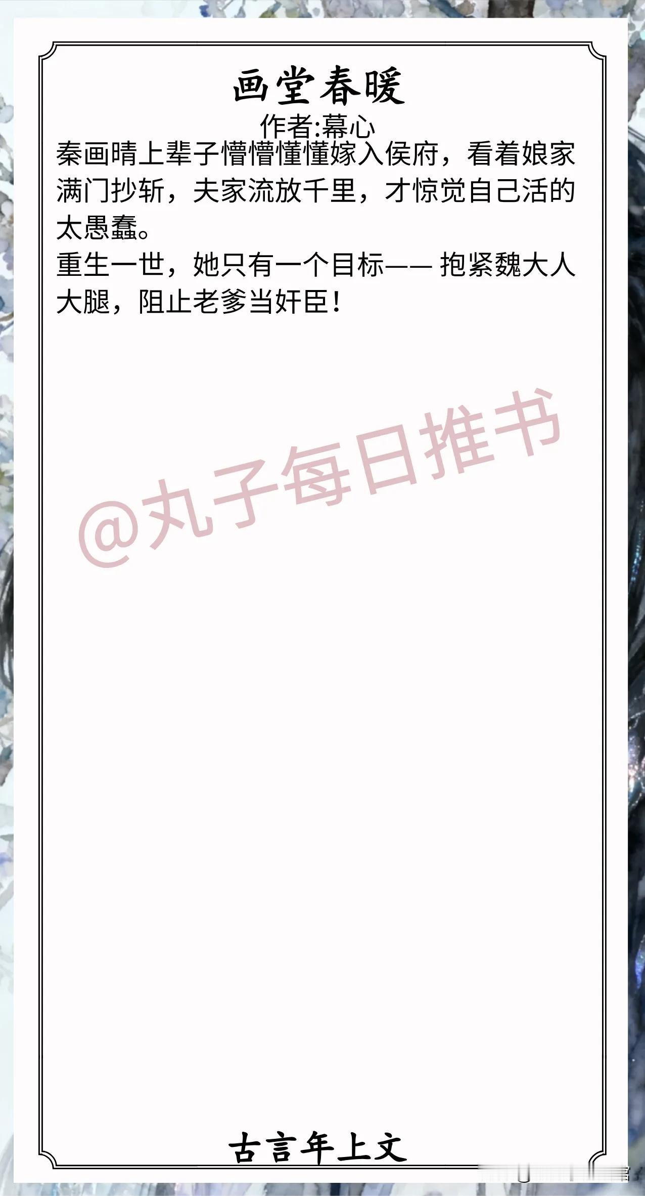 3.《画堂春暖》作者:幕心(柔弱美人vs高冷大理寺卿,重生,老夫少妻,轻松甜宠文)