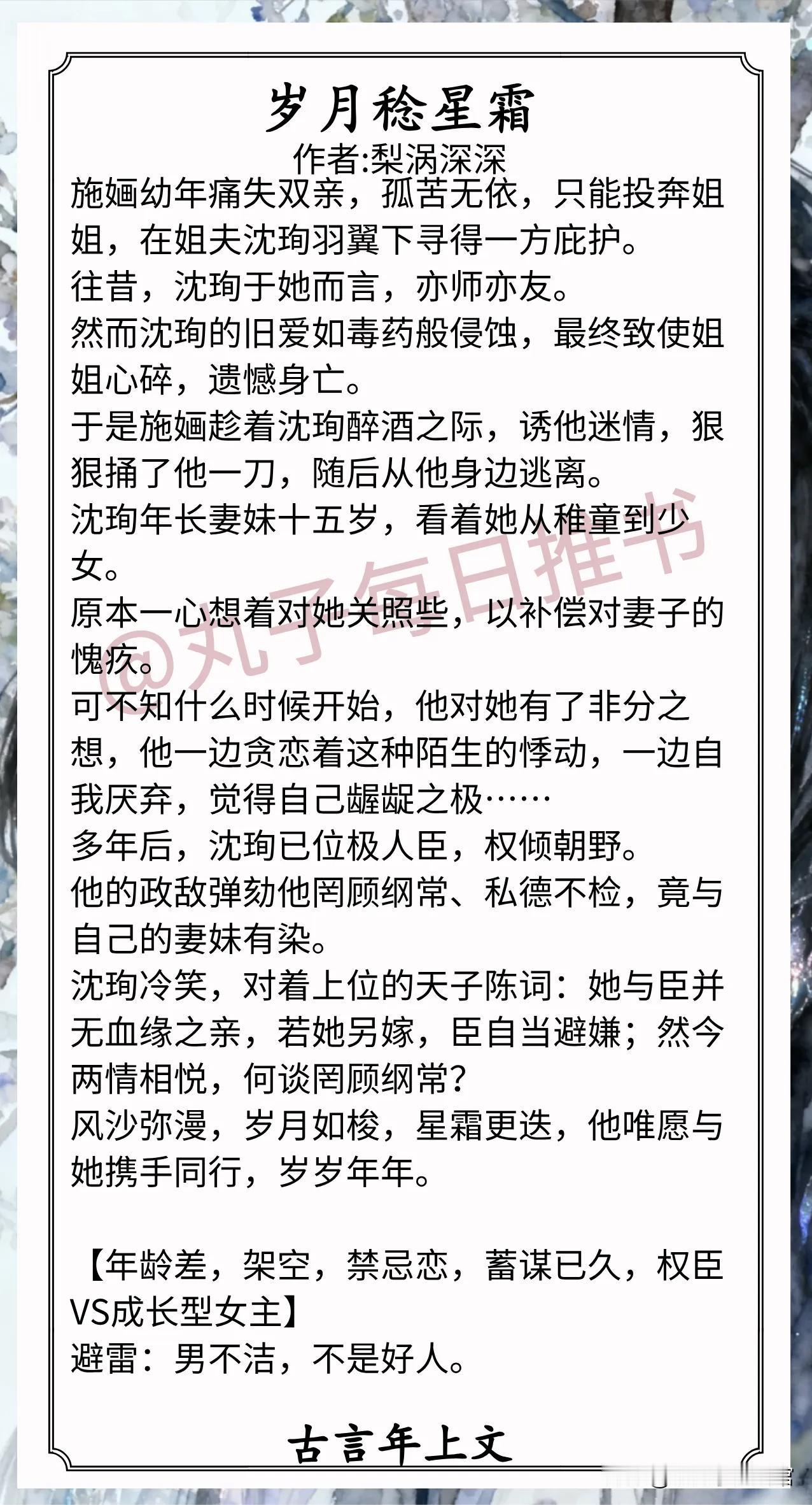 5.《岁月稔星霜》作者:梨涡深深(成长型孤女vs隐忍权臣,蓄谋已久,姐夫文学)