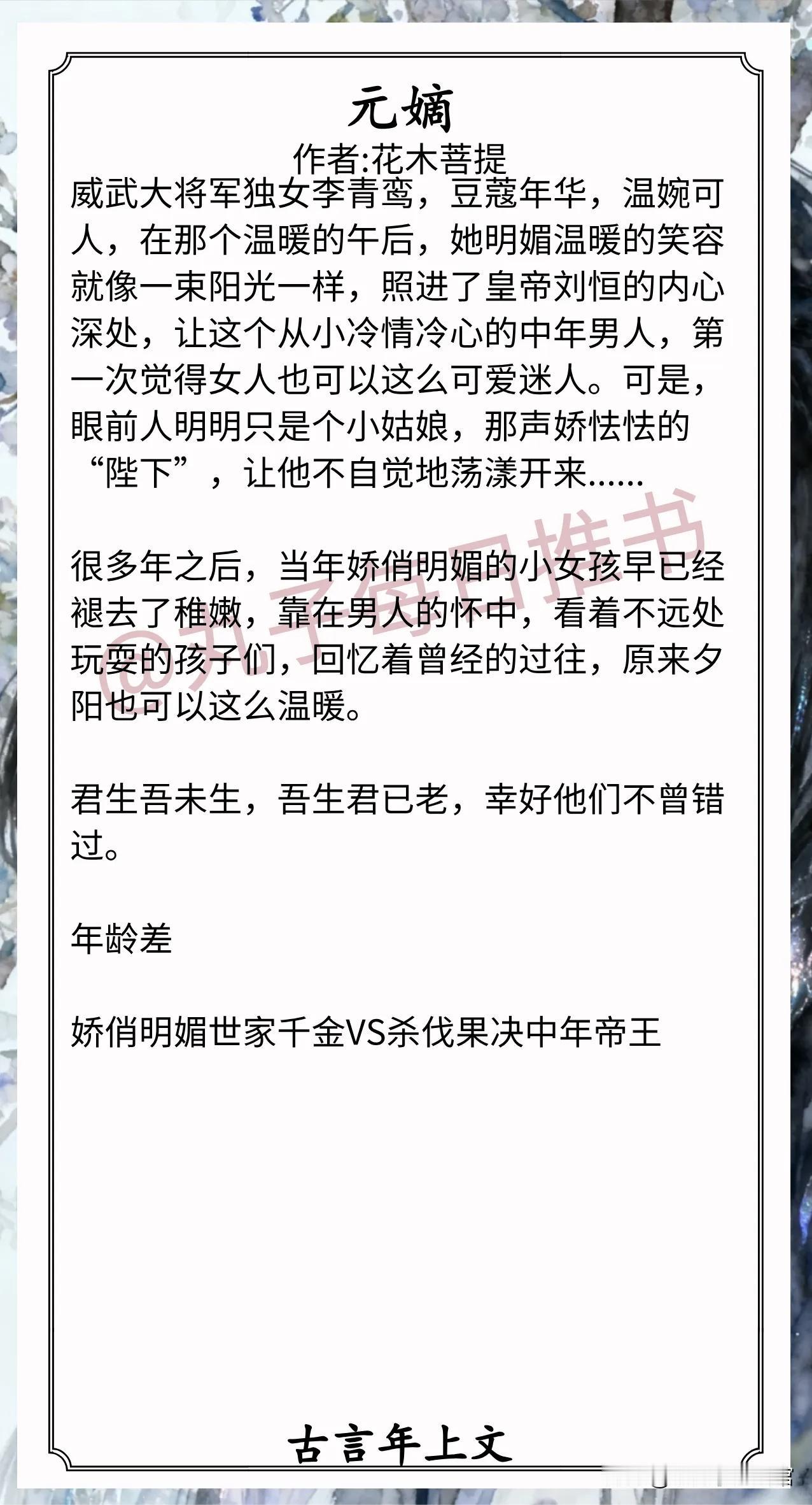 6.《元嫡》作者:花木菩提(温婉贵女vs中年帝王,一见钟情,男宠女,年龄差大)