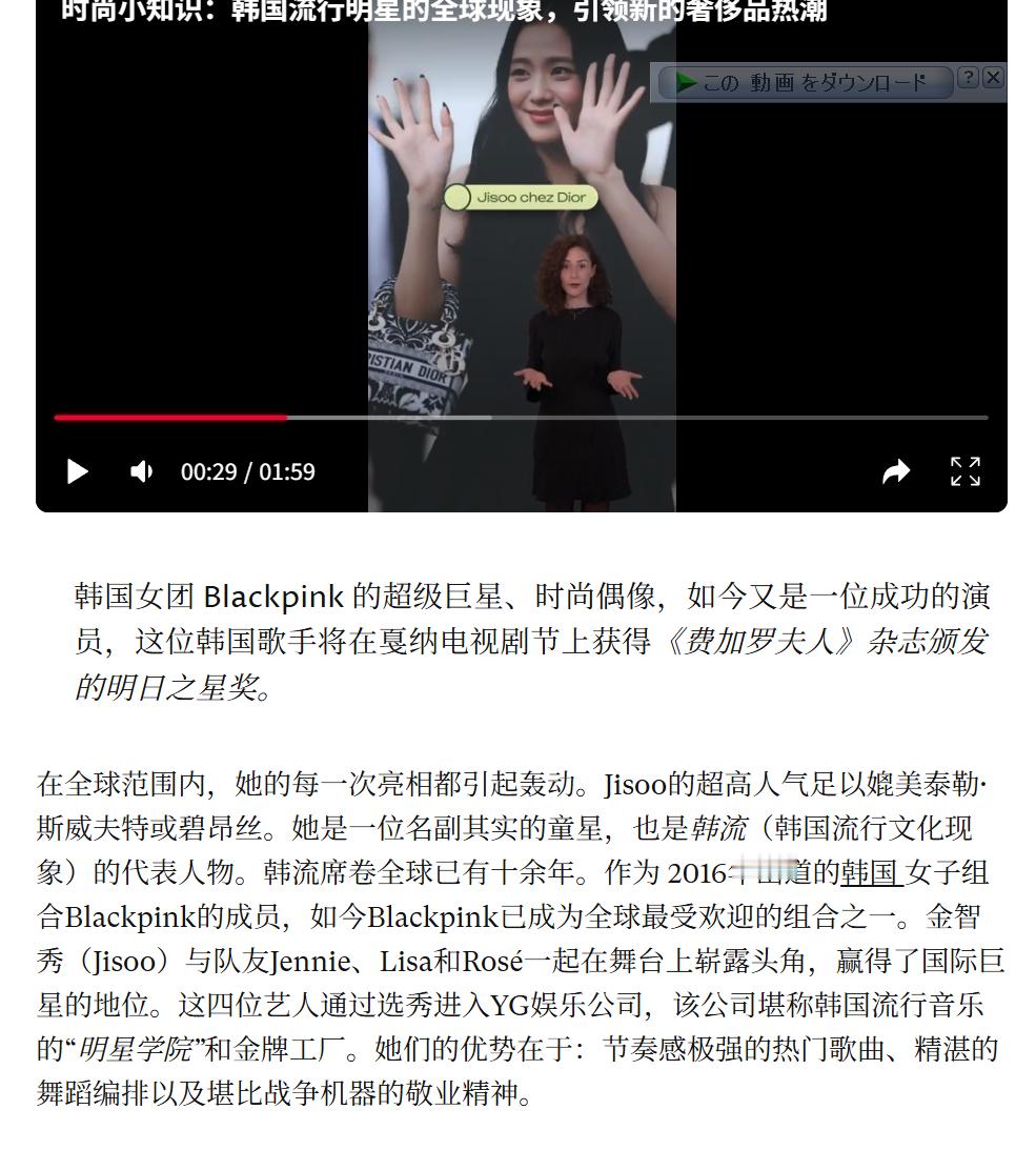 “Blackpink 的超级明星、时尚代言人,如今又是成功的演员——这位韩国女歌