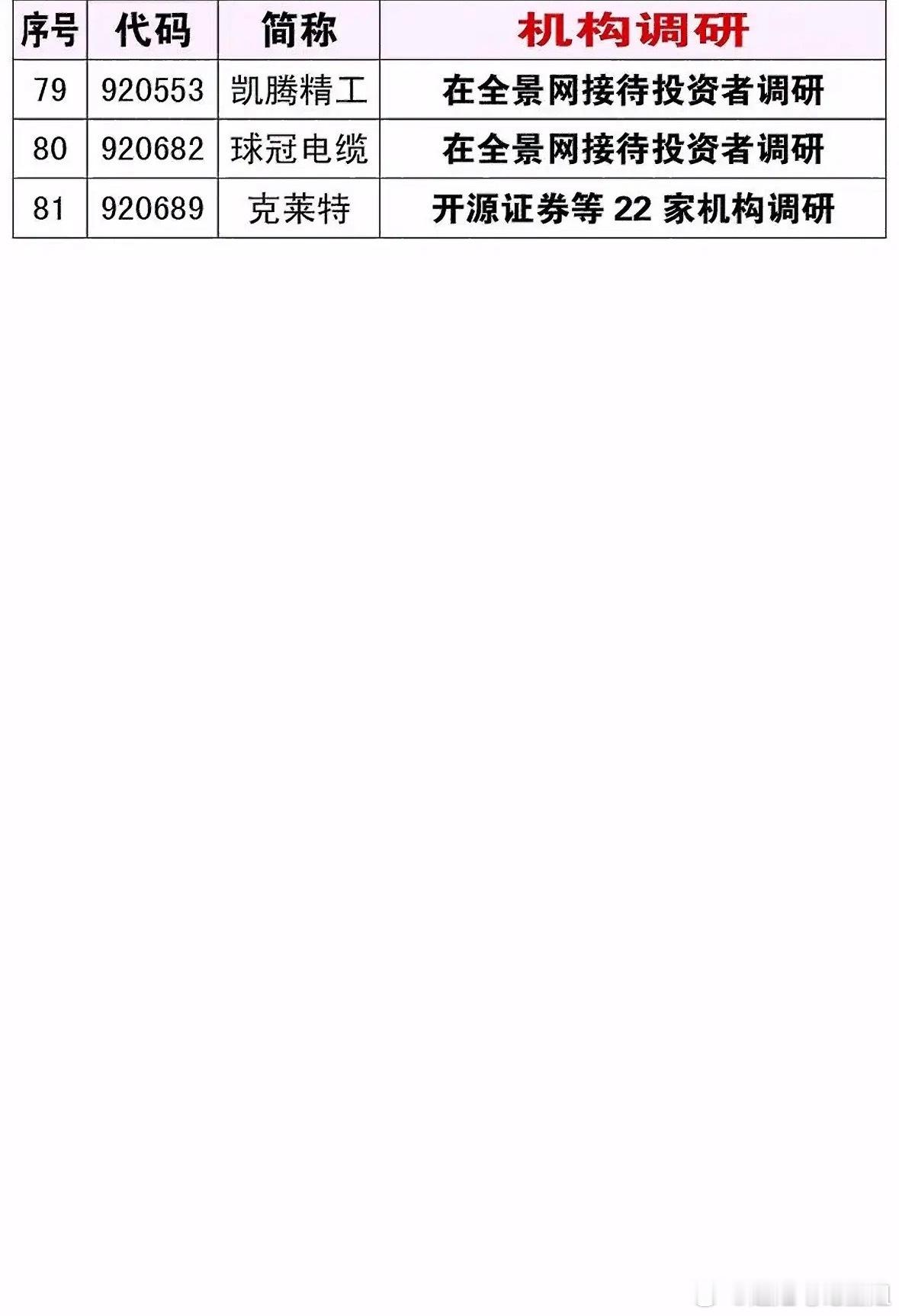 4月18日周六机构调研情况还挺有看头。据了解,一些科技类公司备受关注。比如有一家做人工智能芯片的企业,机构对其研发进展和市场前景十分感兴趣。还有一家新能源汽车零部件制造商,因其在电池技术上的突破,吸引了众多机构前去调研。另外,医疗行业的一家创新药企也在调研名单中,它的几款在研新药有望改变行业格局。从这些受关注的公司能看出,科技、新能源和医疗领域是当下机构重点关注的方向,说不定这里面就藏着未来的潜力股呢。
