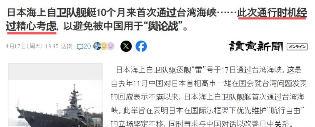 日本舰艇穿越台海后去向曝光,日媒坦言:通行时机经过精心考虑!