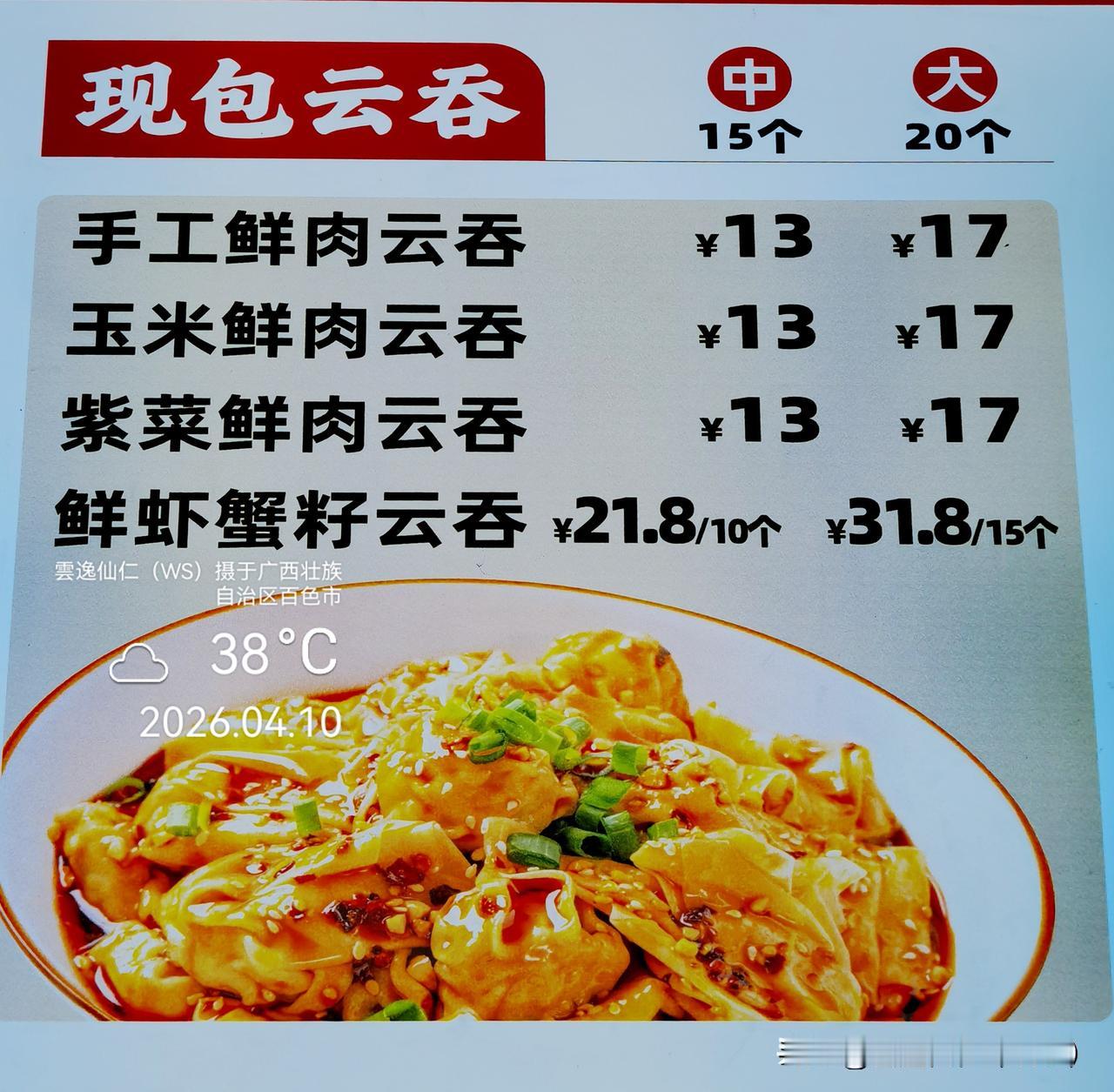 旅居生活记录(9462)广西壮族自治区百色市(147)品尝小吃42:鲜虾蟹籽云吞(21.8元1中份/10个)等。