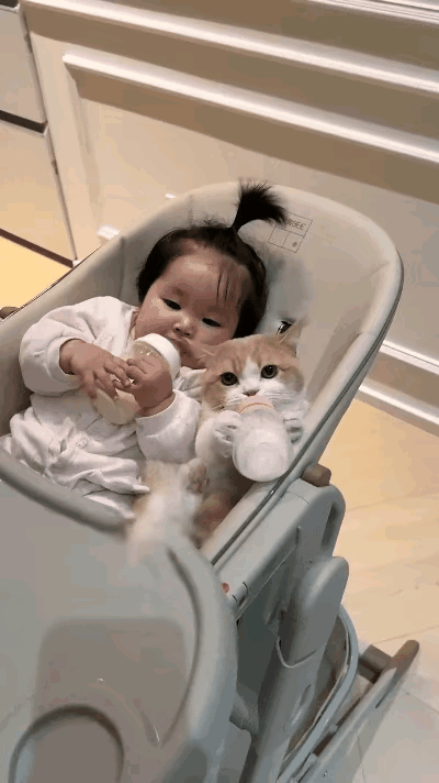 宝宝喝奶时,小猫咪凑过来撒娇,宝宝立马化身小暖宝,主动举着奶瓶分给小猫,耐心又温柔。小猫毫不客气地贴过来,和宝宝共享一瓶奶,一人一猫亲密无间,满是童真与美好。