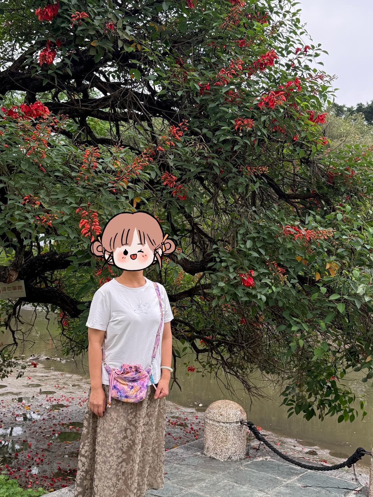 搭配白T恤(买的,不是自己做的),斜挎小布袋也是自己做的。
