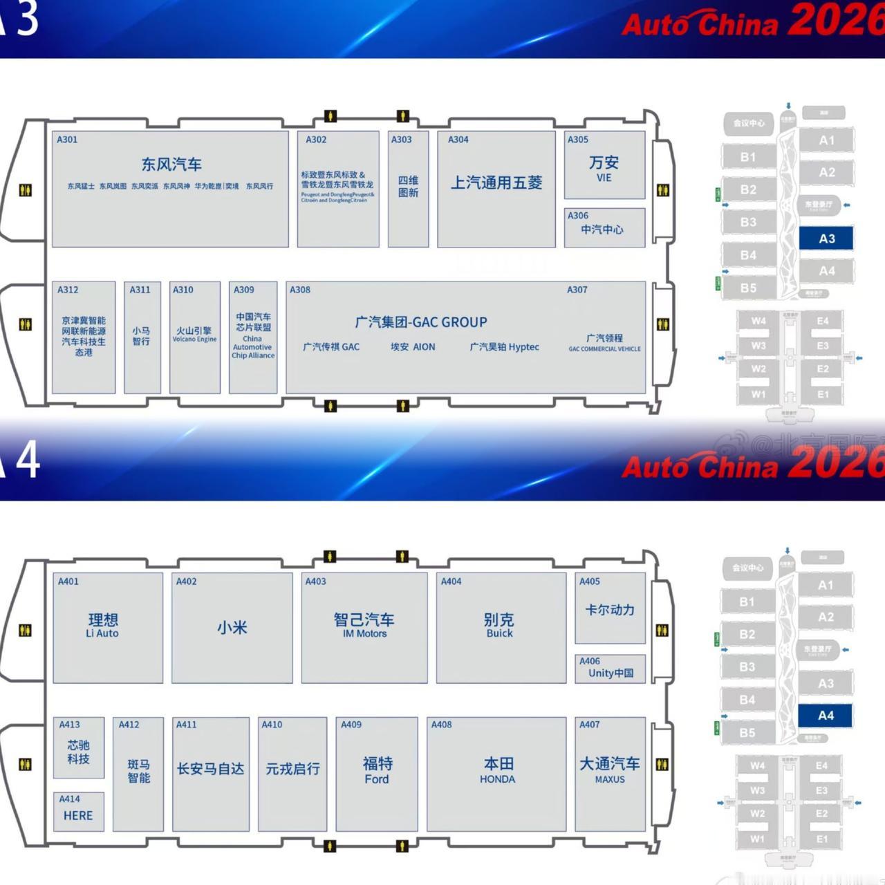 新鲜的~北京车展展位图,史上最大车展,南北两个馆[旺柴],燃烧你的卡路里。比亚迪依旧包馆,豪横~鸿蒙智行,华为乾崑,华为数字能源,问界,智界都有各自的展位,启境和奕境也有独立的位置,这两个境是车展首次亮相,可以好好瞅瞅。小米挨着理想和智己~四环奥迪和字母奥迪联手~意外的是标致雪铁龙也参展了,不容易呐。下周24号媒体日第一天,大家想看什么车?留言留言(其实好多新车我们都拍了,下周一开始猛发,一定来我这看[偷笑][偷笑][偷笑])【来自懂车帝车友圈】