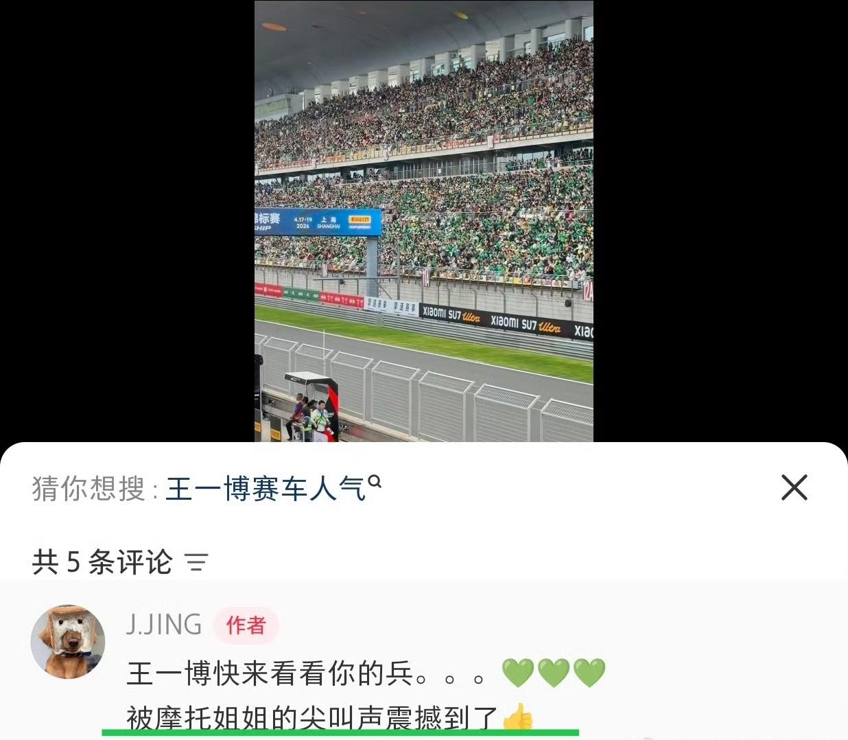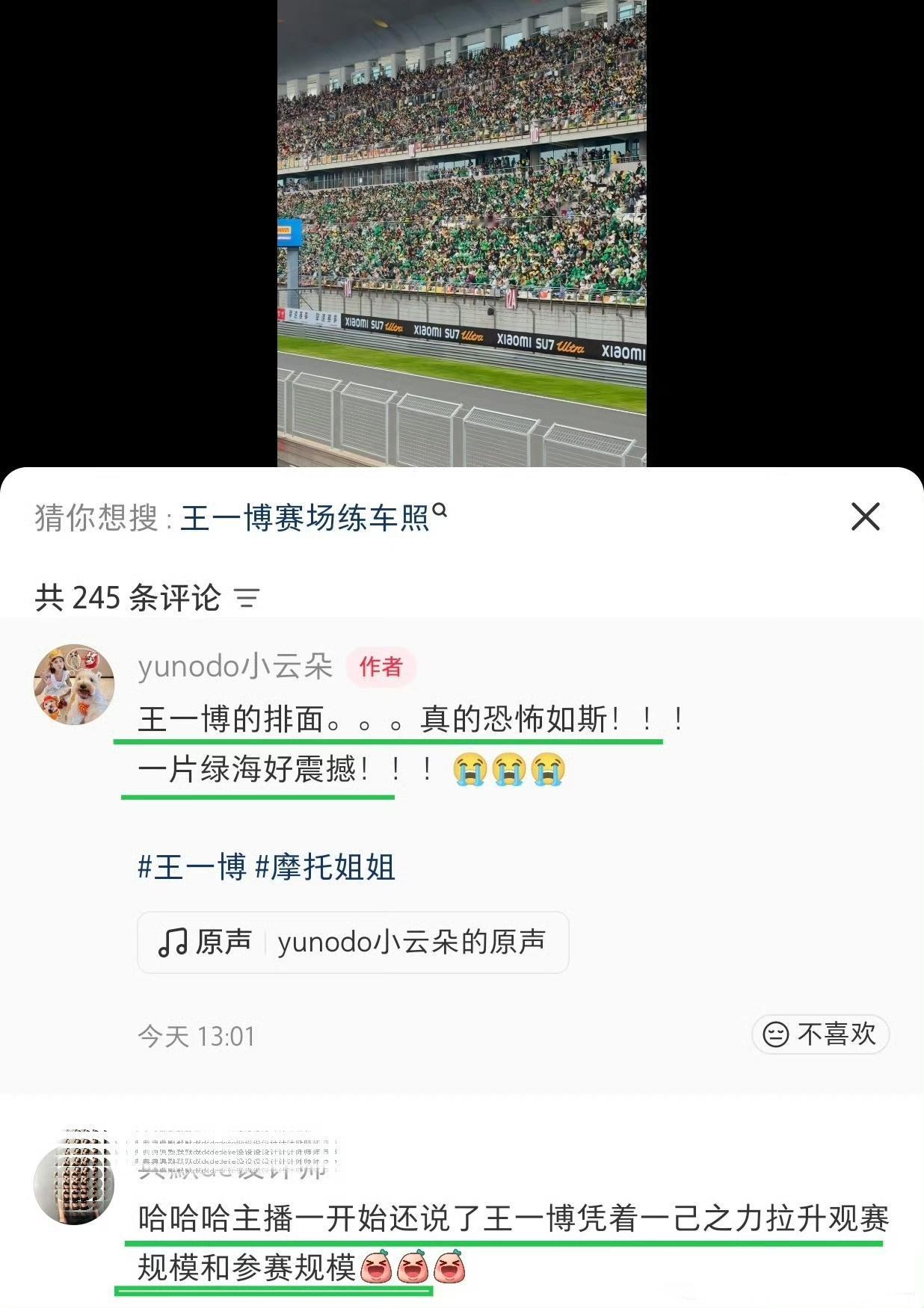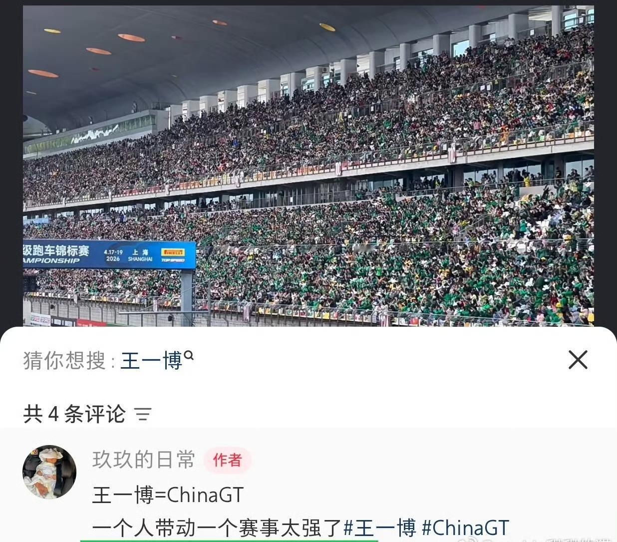 赛车赛出了个人演唱会的感觉,全场观众集体欢呼“王一博加油”,人气太震撼了![奋斗][奋斗][奋斗]