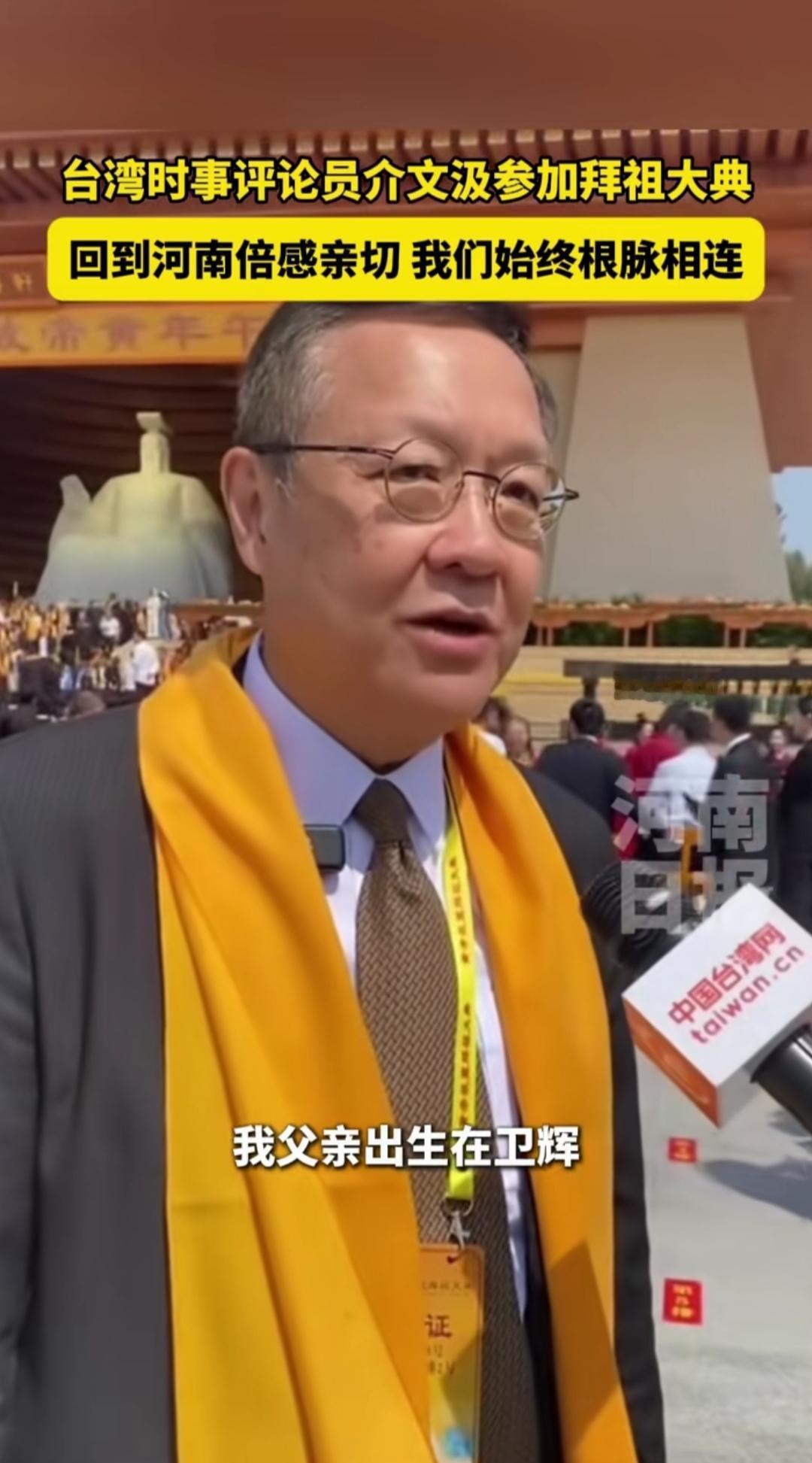 2026年4月,台湾资深时事评论员、前外交官介文汲,专程赶赴河南新郑,参加丙午年黄帝故里拜祖大典。面对记者访问,他说,“站在这块养育华夏文明的黄土地上,心情很是激动” 。