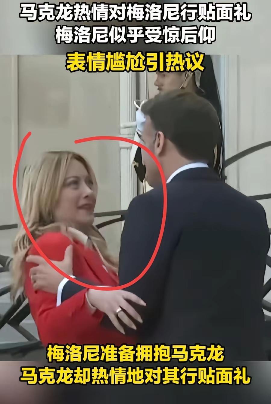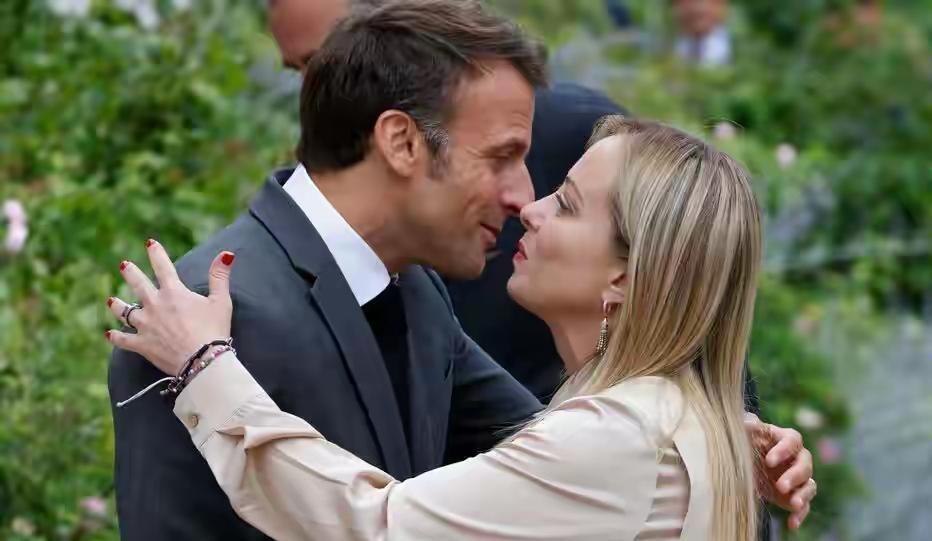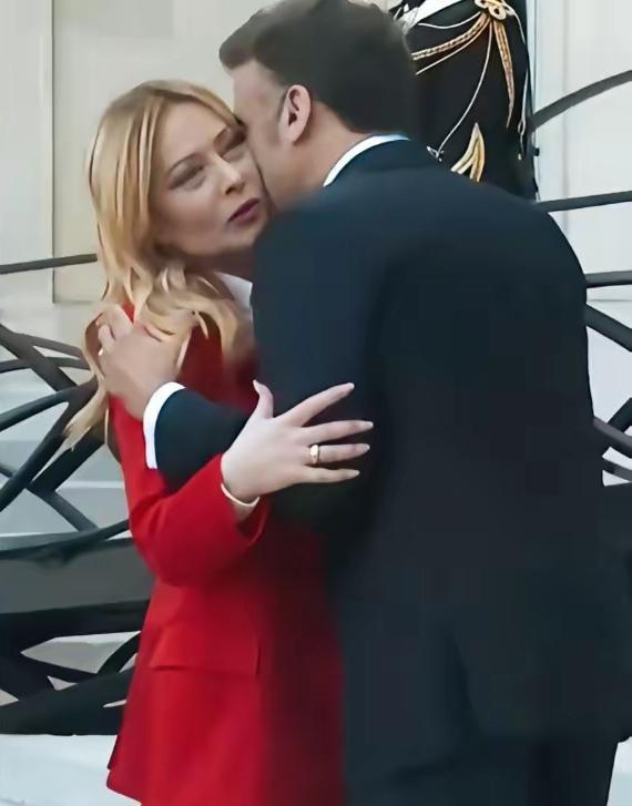 法国总统马克龙迎接意大利总理梅洛尼,本是个常规的外交动作,结果马克龙一个“猛虎扑食”式的贴面礼,直接把梅洛尼整成了石像。