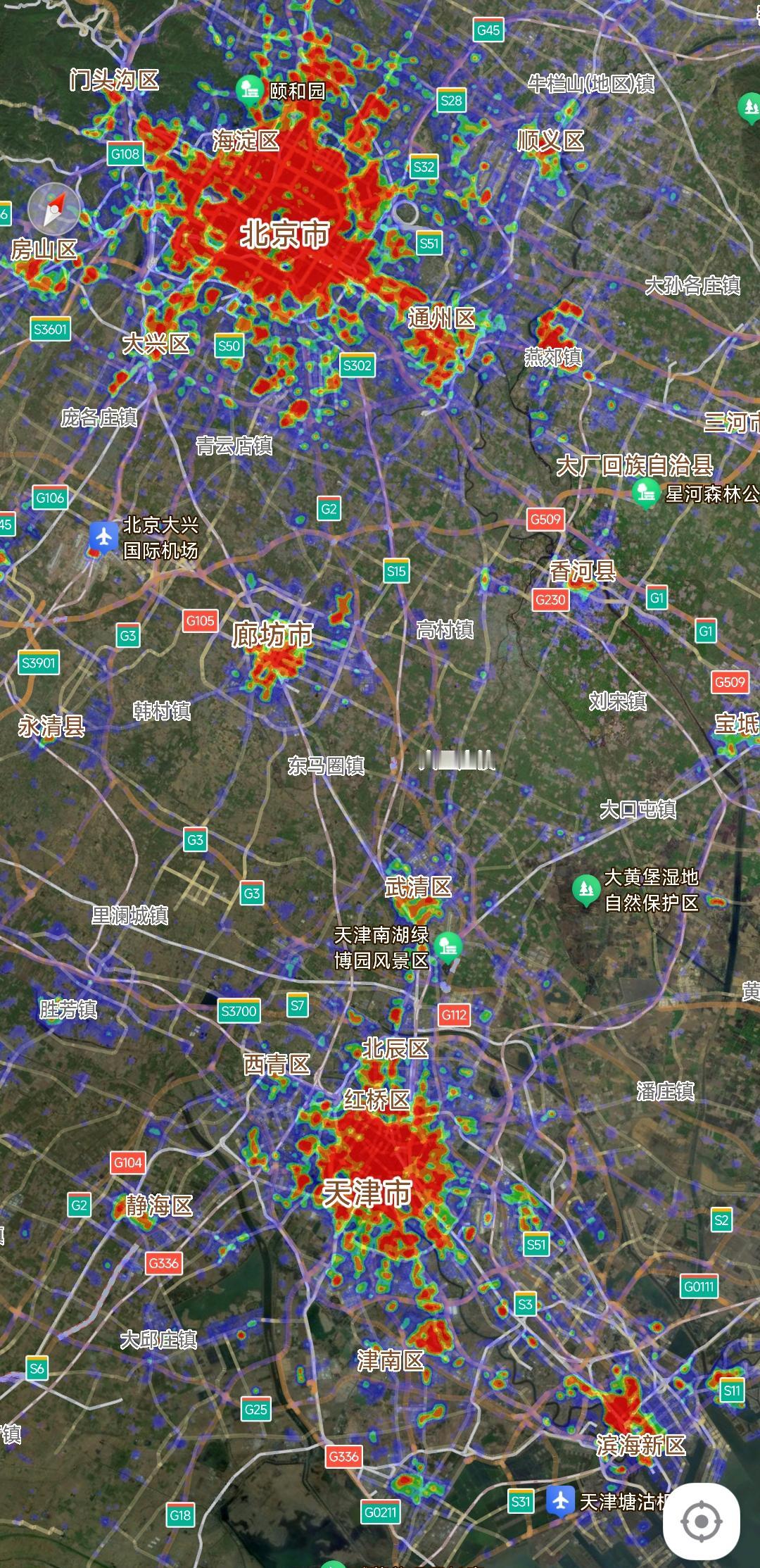 对于北方人来说在北京工作,在天津定居生活应该是很不错的人生规划。仔细观察尽管北京人口数量将近天津的2倍,可是市区面积天津与北京其实差不多少,看到蓝色区域面积差距不大足以验证这个观点。
