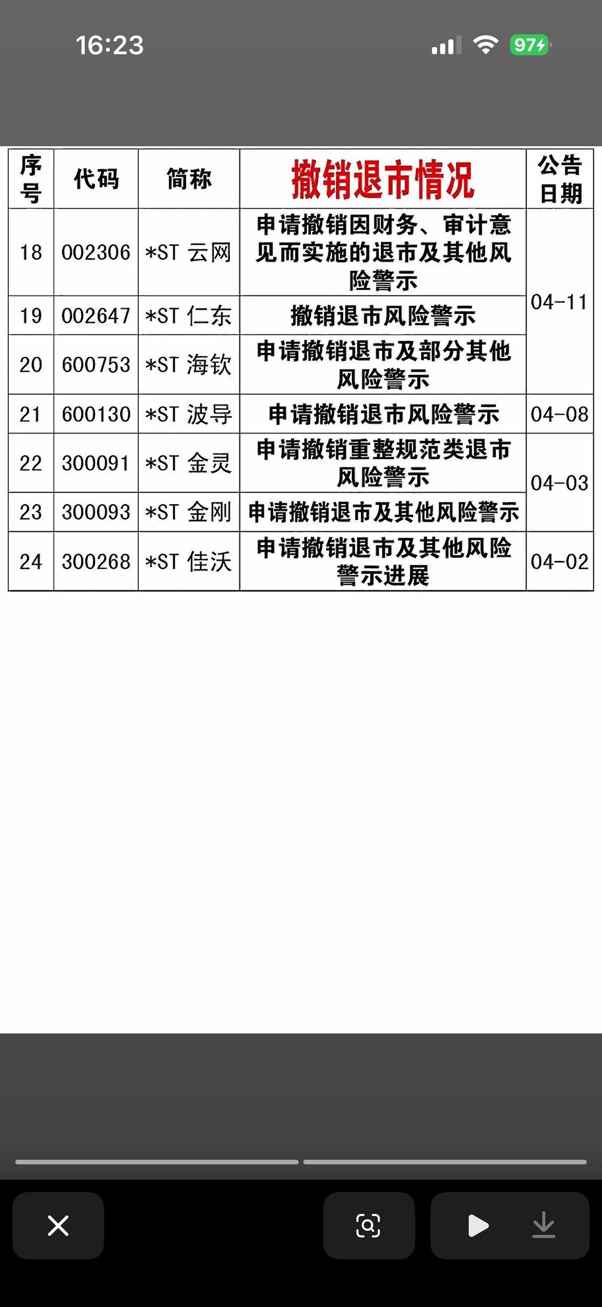截止4月18日,有24家公司申请撤销退市风险警示的公司一览表