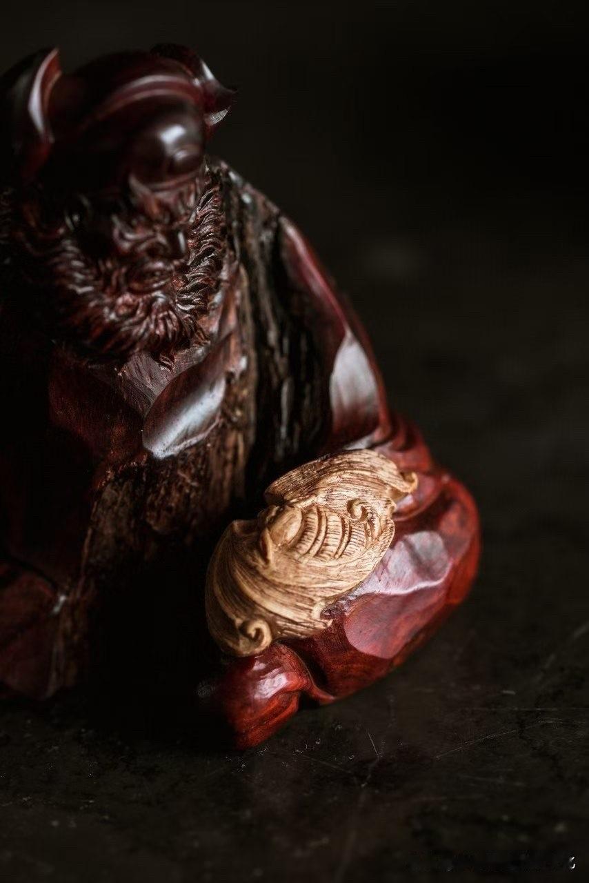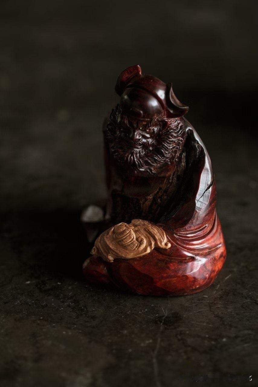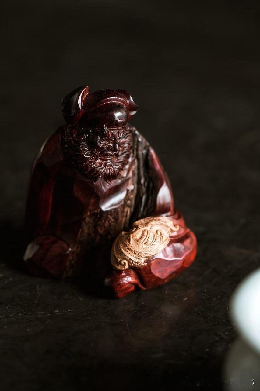有些小件,体量不大, 气却很重。 这尊钟馗,用小叶紫檀的老料去做, 油性深沉,
