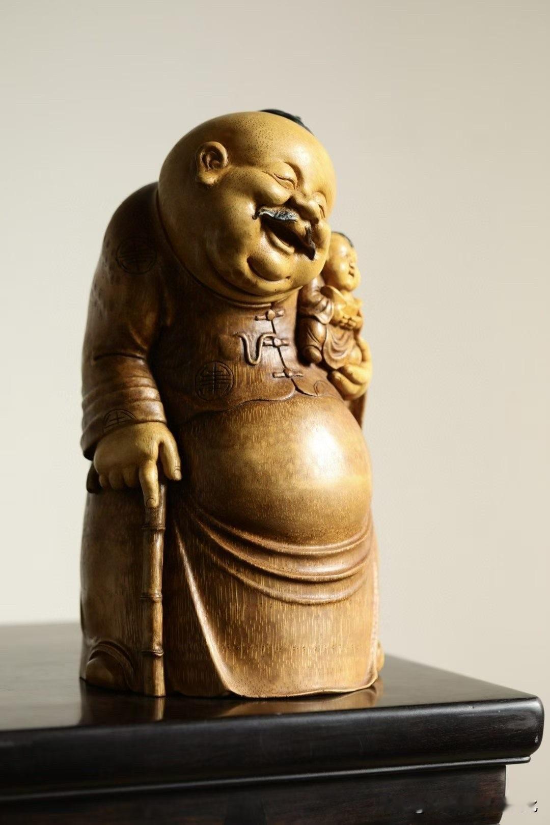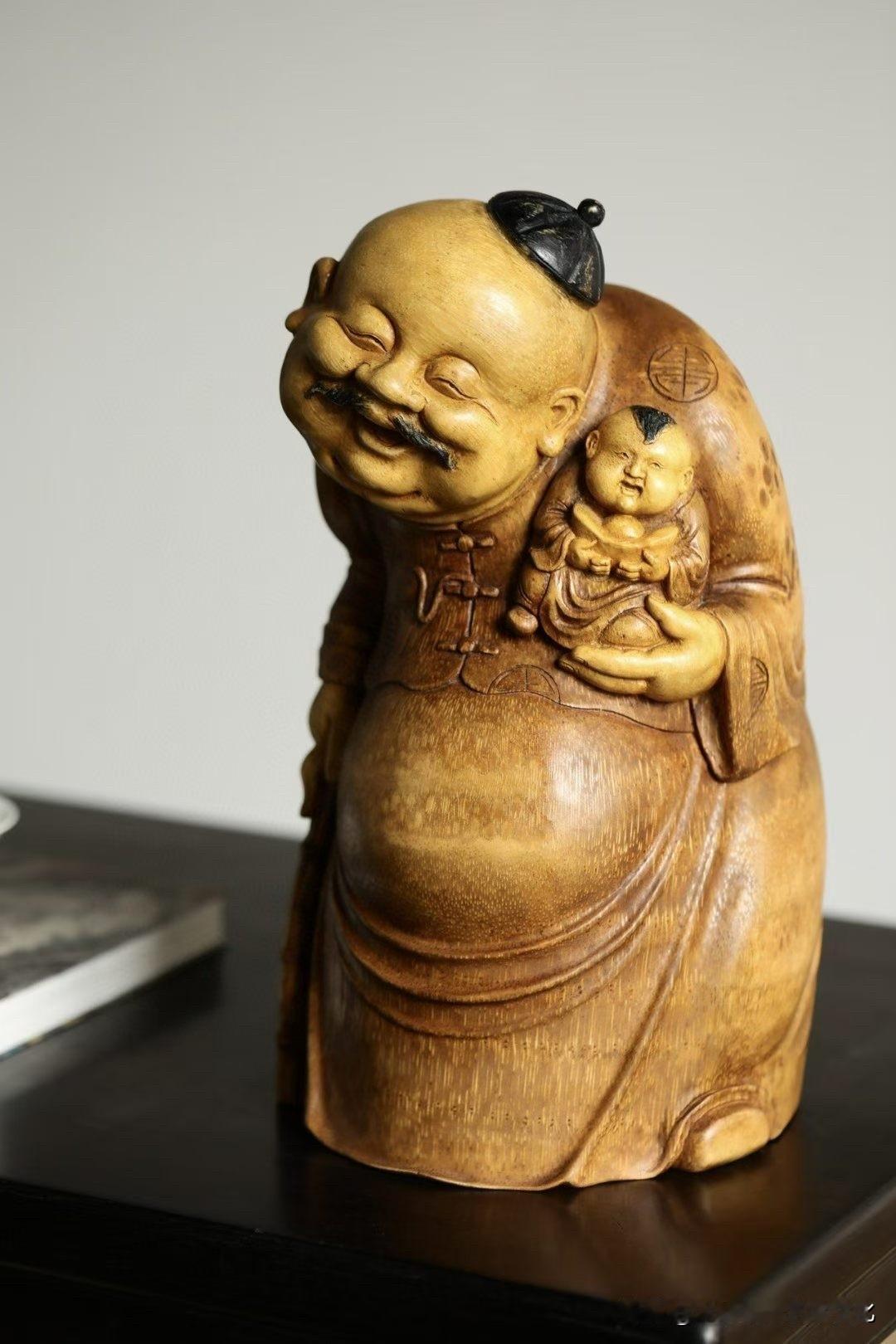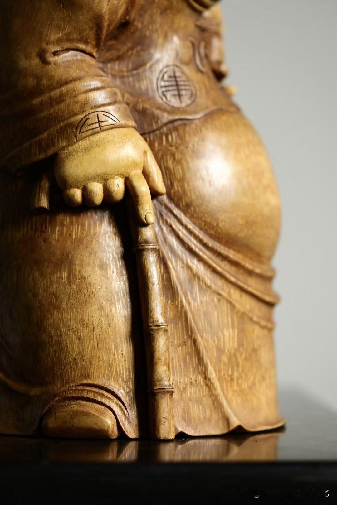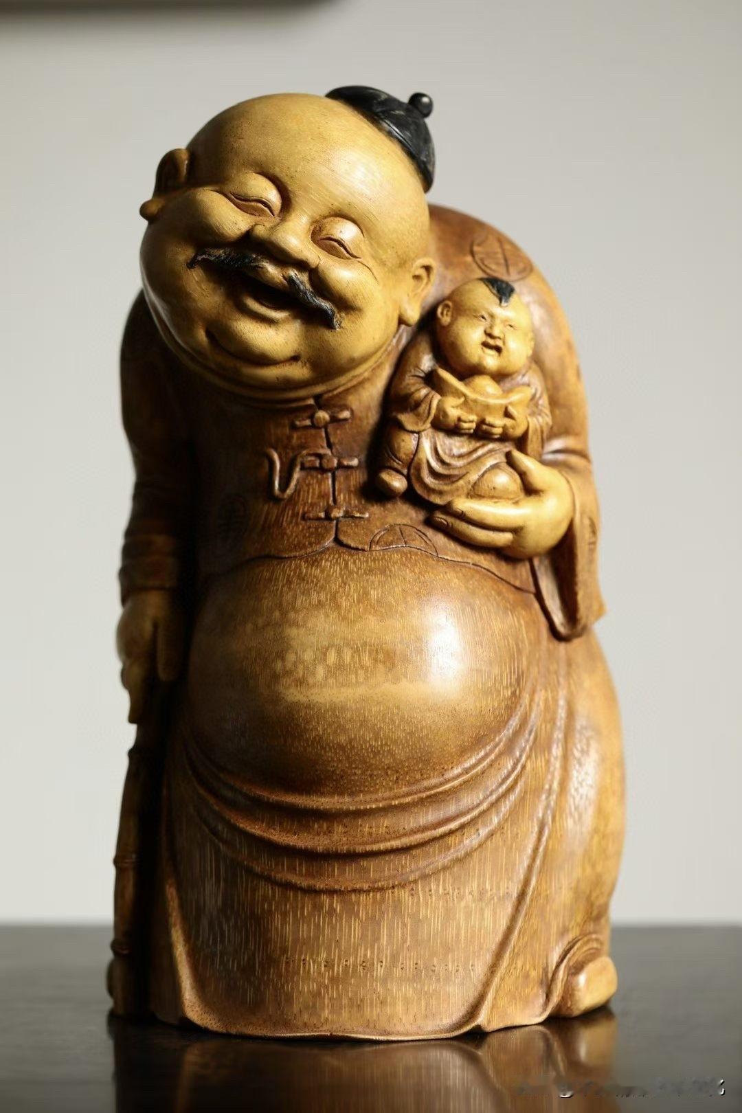 有些题材,一看就让人轻松。 这尊“欢喜财主”,用老竹去做, 色温柔,气不重,