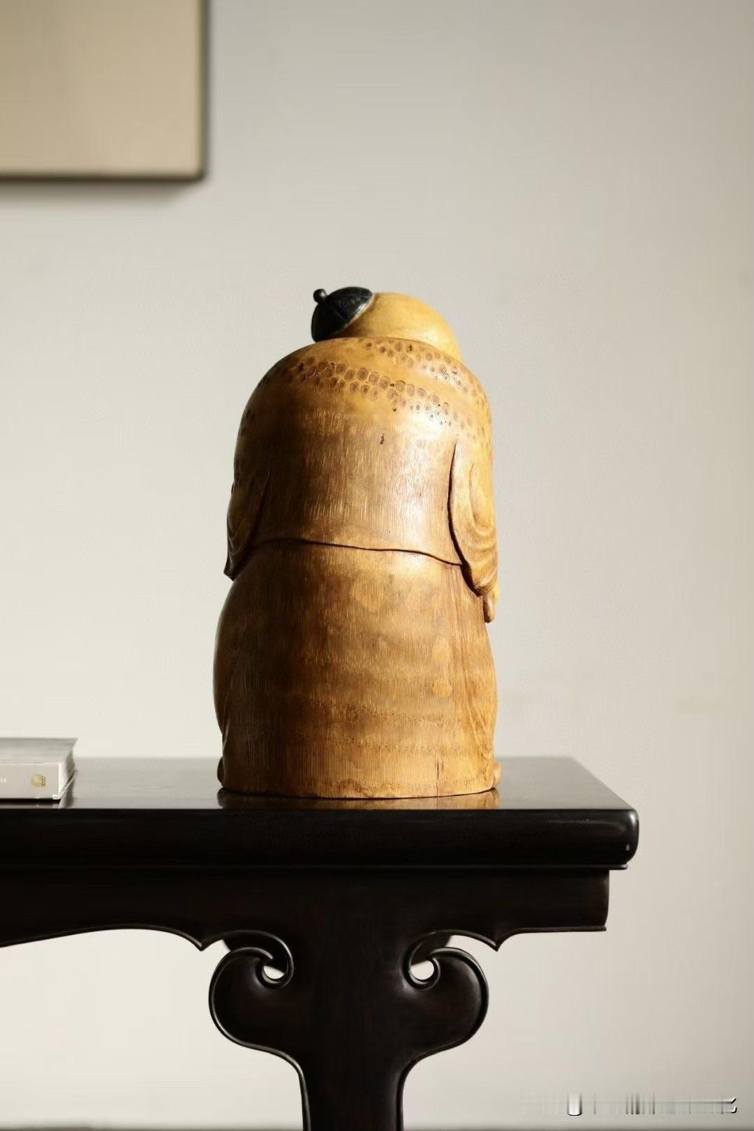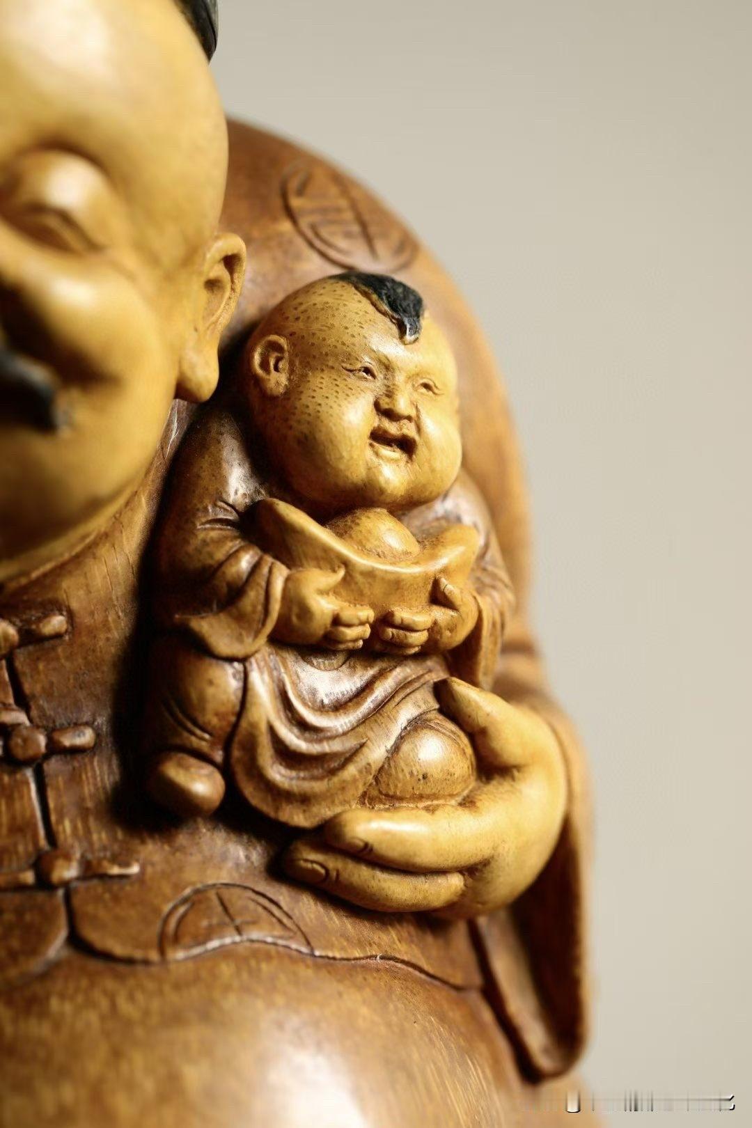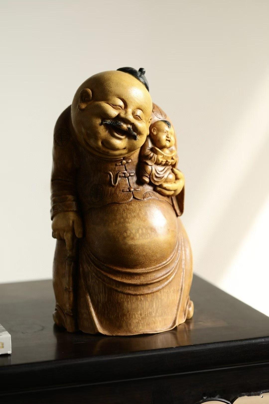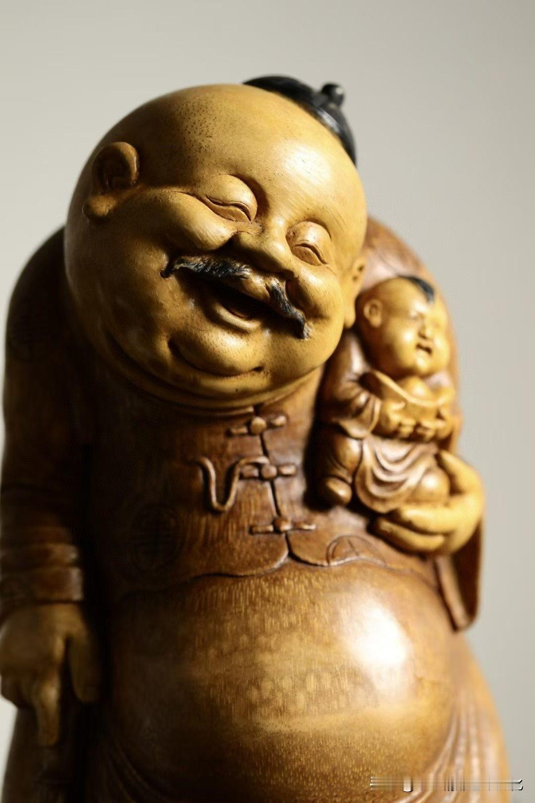 有些题材,一看就让人轻松。 这尊“欢喜财主”,用老竹去做, 色温柔,气不重,