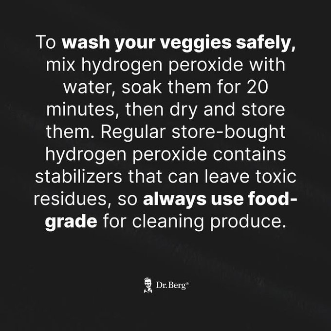 而且它做起来非常简单。只需将1/4杯食品级过氧化氢与1加仑水混合,然后将你的蔬果浸泡在其中20分钟。