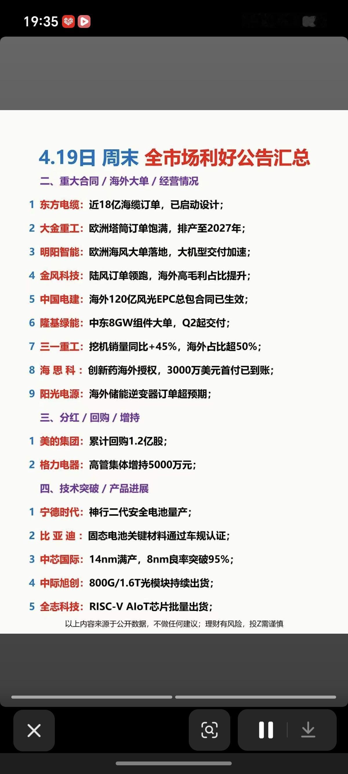 4.19周日 晚间利好 公告汇总!