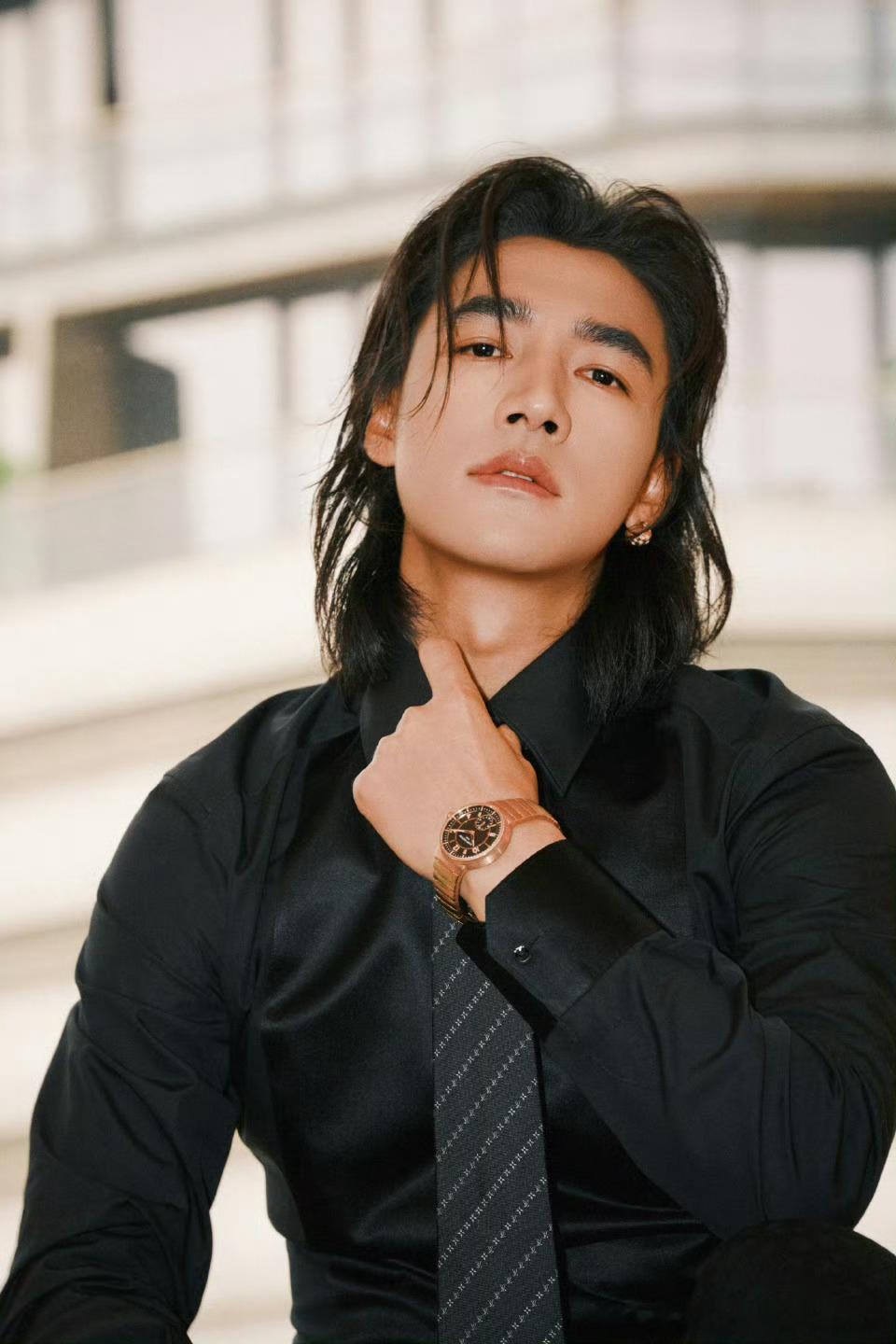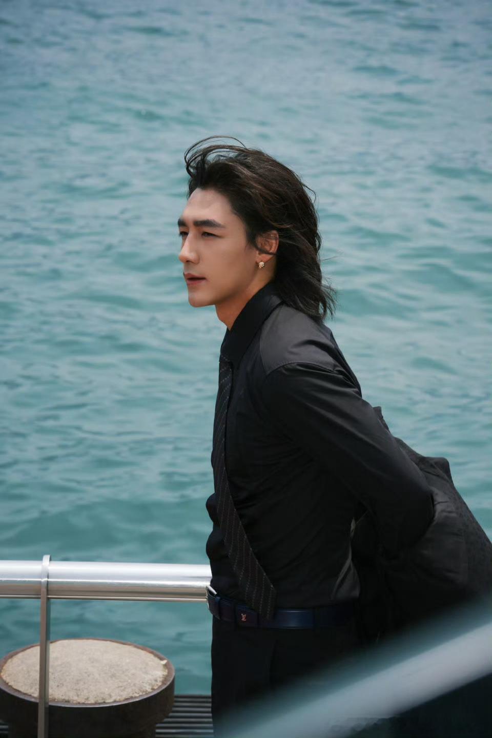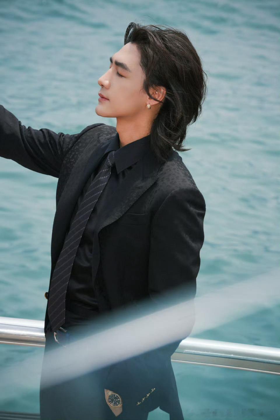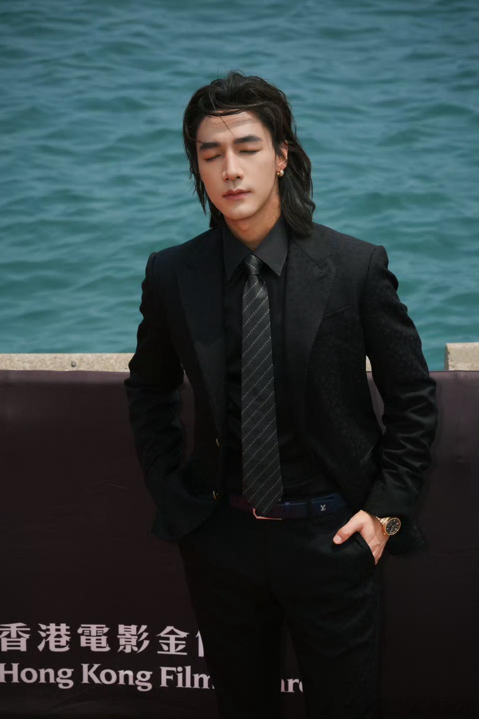 此沙金像奖红毯此沙走了两遍金像奖红毯 此沙黑西装背头造型亮相金像奖红毯,港风氛围