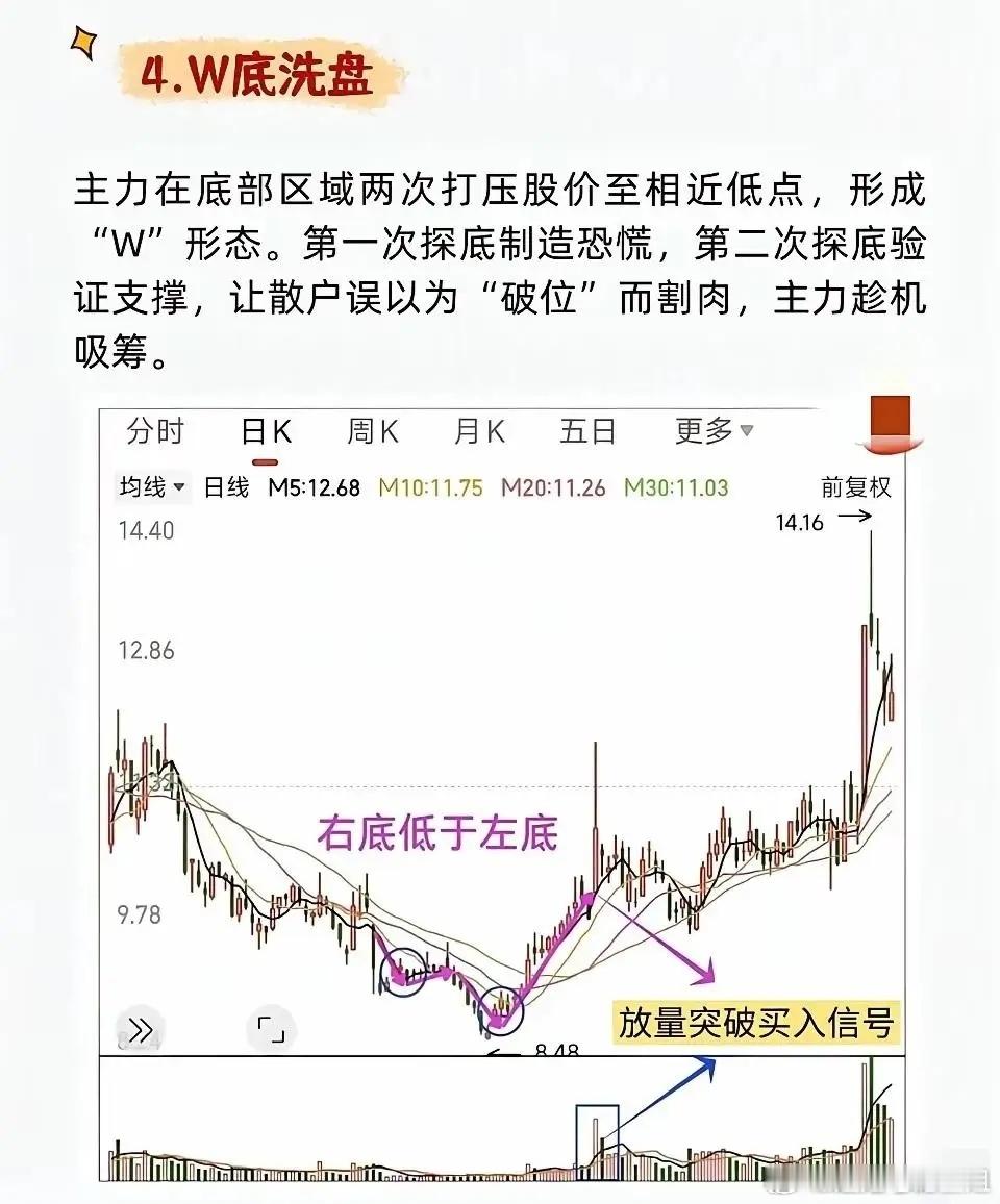炒股这事儿,识别主力洗盘结束的特征真能帮咱少走不少弯路。就拿K线和成交量结合来说,有7种洗盘形态和买入信号超关键。比如缩量回调后温和放量的形态,当股价回调时成交量大幅萎缩,说明抛压小了,之后温和放量上涨,可能就是洗盘结束要拉升了。还有长下影线的K线,主力在盘中打压股价后又迅速拉起,留下长下影,这往往是洗盘接近尾声的信号。另外,股价在低位横盘整理,成交量极度萎缩,突然某天放量突破整理区间,也是不错的买入时机。掌握这些,说不定在股市里能多抓几个涨停板呢,赶紧收藏研究起来!