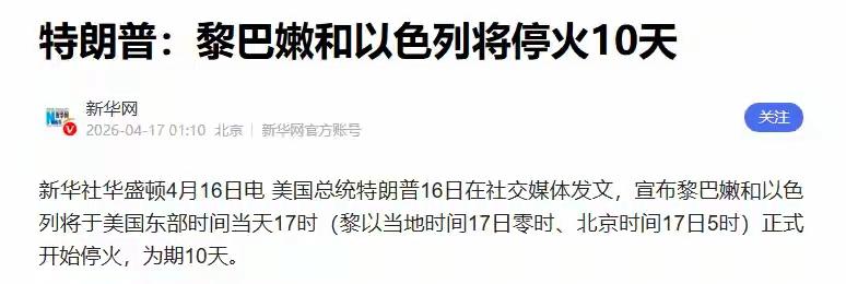 4月16日深夜,特朗普突然宣布:以黎达成10天停火,17日零时生效。讽刺的是,以色列内阁竟从媒体才得知消息,内塔尼亚胡仓促召集电话会,开会5分钟,特朗普声明已全球播出。以高官直言:停火是被强推的。