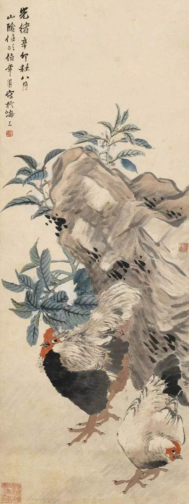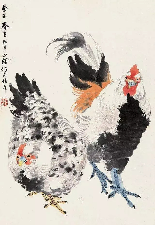 鸡,作为一种我们生活中常见的家禽,日出而啼,日落而息,它对大自然的先知先觉,不仅能鼓舞士气、催人奋进,还有着吉祥如意、大吉大利的美好象征。其中也能感悟到许多人生哲理、道德品性、生活理念及艺术情趣。尤以清末著名画家——任伯年笔下的没骨鸡,最为人称道。这就是中国风遇见艺术