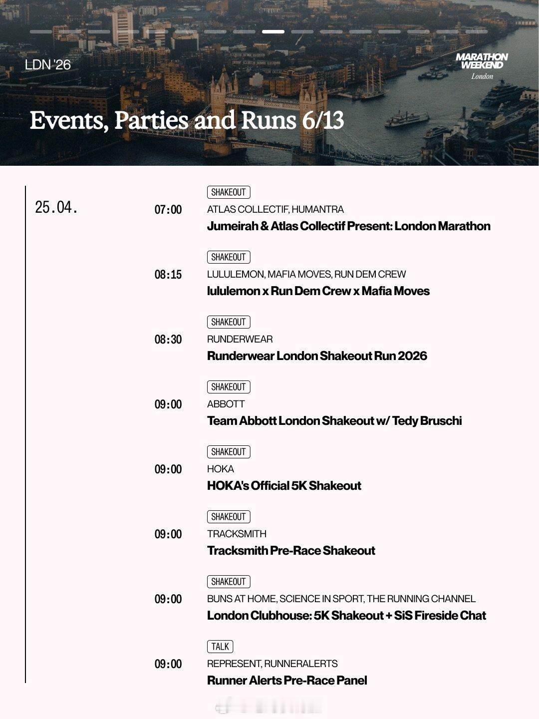 2026伦敦马拉松快闪店和早餐跑信息汇总