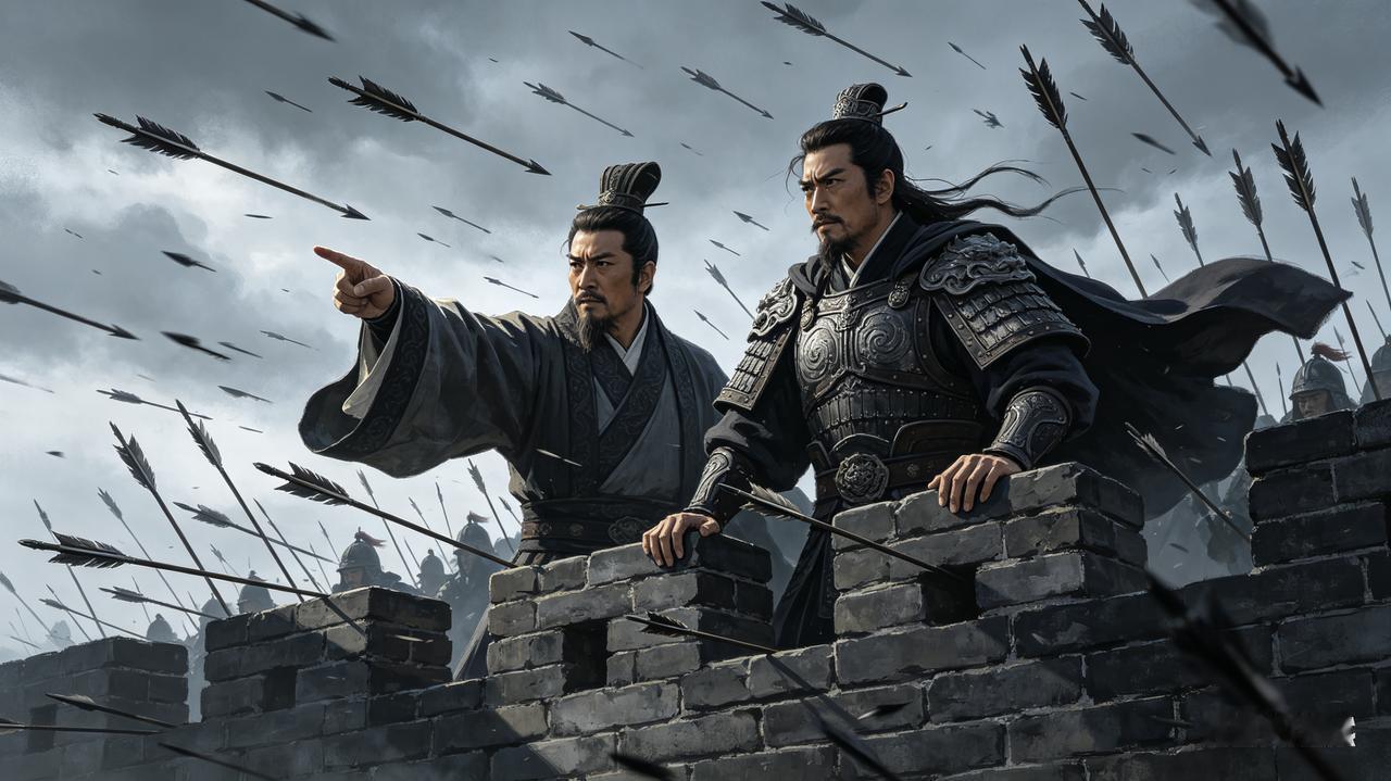 刘备听罢一动不动。赤色战袍在箭风中猎猎作响,他像一尊石像般立在城垛后,任凭箭矢从身边掠过。