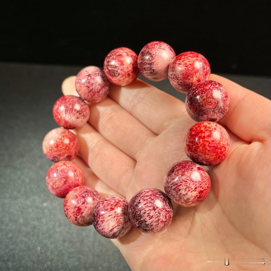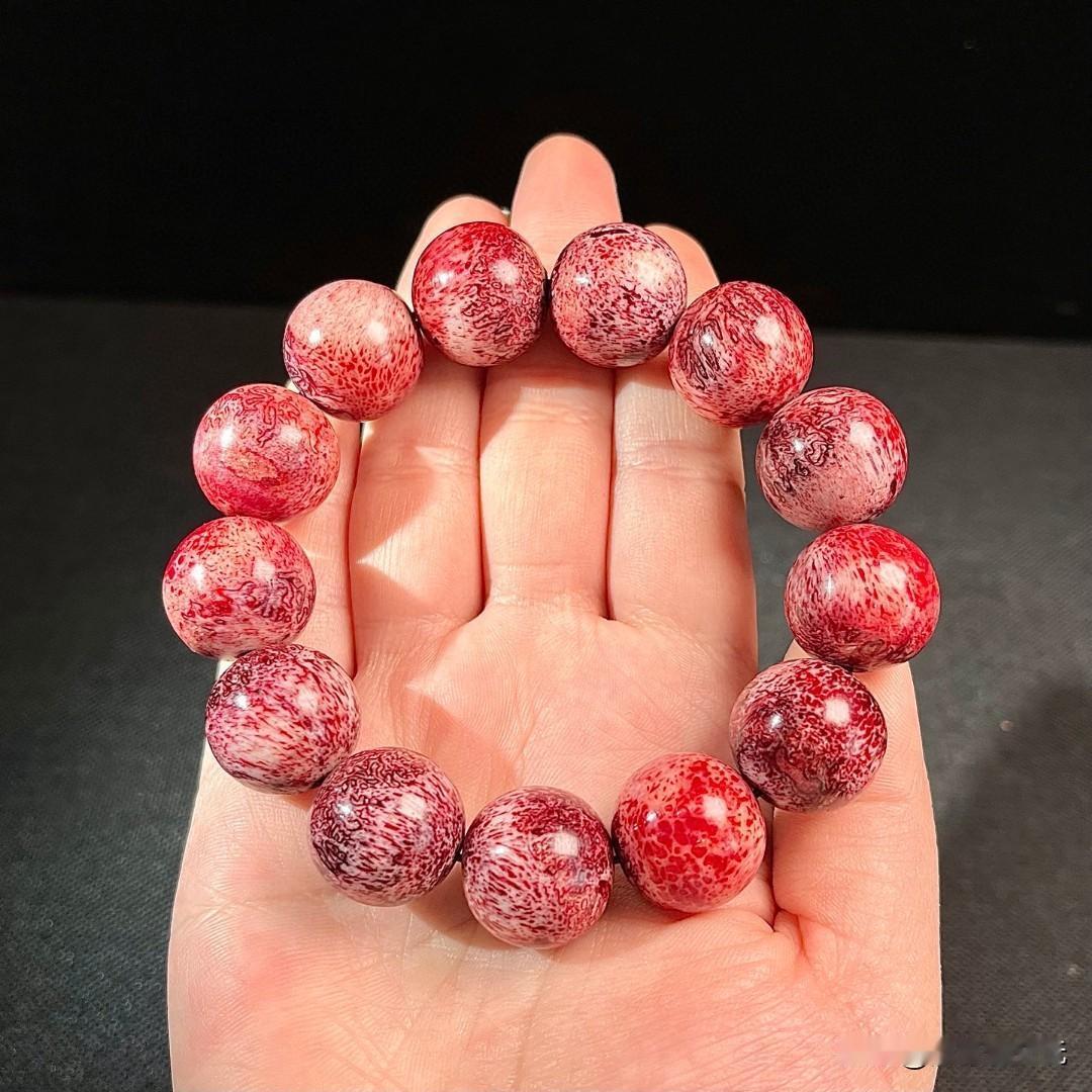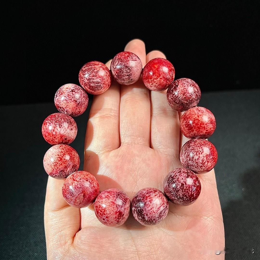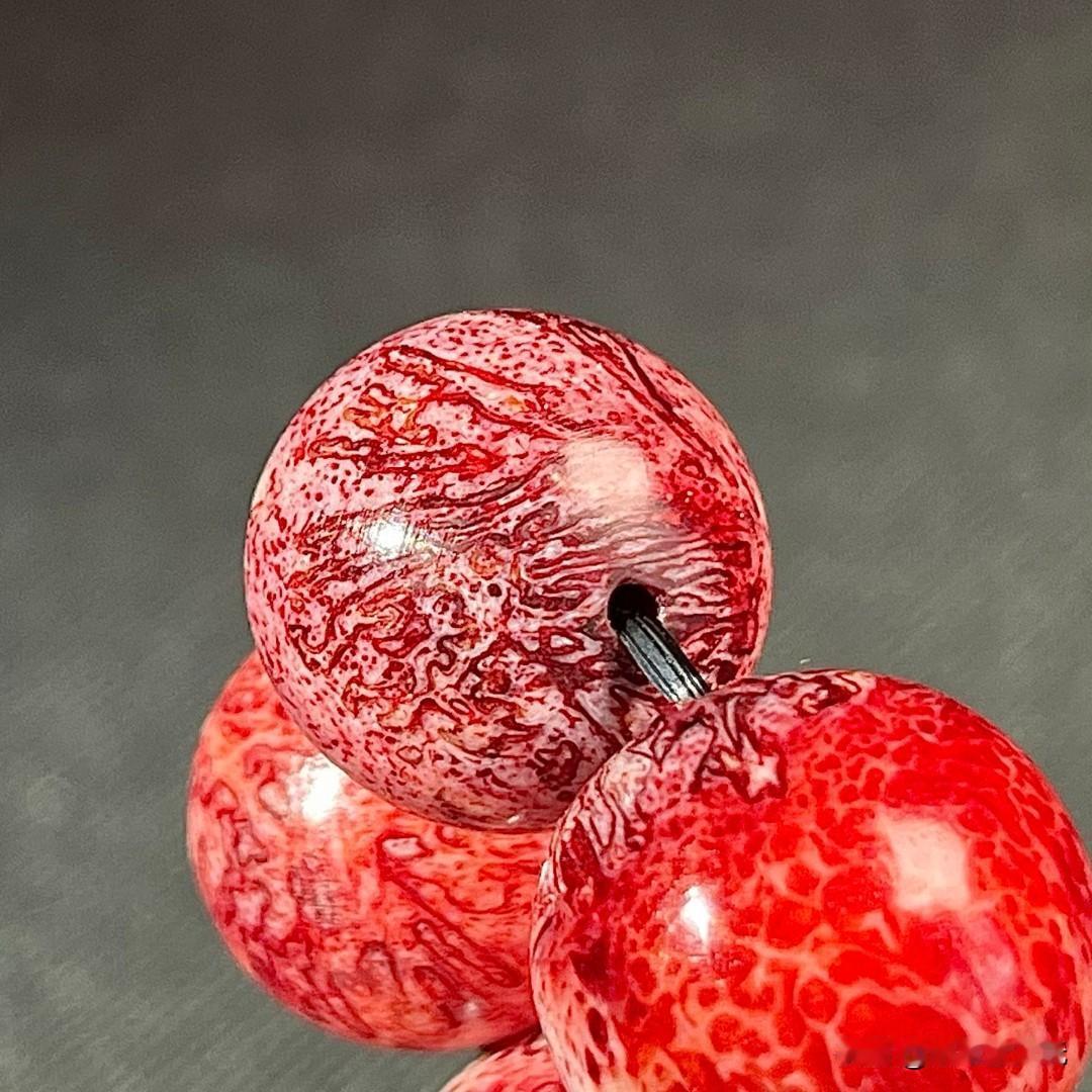 神秘骨雕手串,红色蝌蚪纹理就像流动的岩浆。