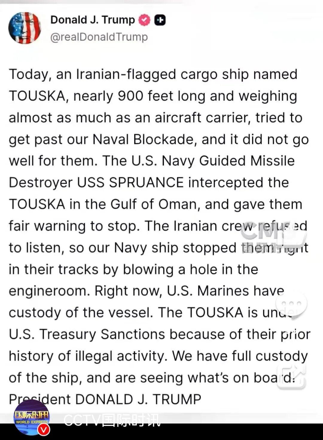 特朗普既然为所欲为,再看伊朗也要围绕霍尔木兹海峡建立起自己的“新秩序”。伊朗已明确表示,包括美伊在内的那些敌对国家船只,未来都不能通过该海峡。伊朗喊话美国接受这一局面,就等于把界限划清楚了。而且,现在又处在停火期,美国和伊朗的各自表态,事实上也是在提出各自的新条件,然后接下来会将其一股脑抛到谈判桌上。所以局势已经非常明显,美伊之间,不会有本质上的妥协,至于中东局势也会愈发胶着。