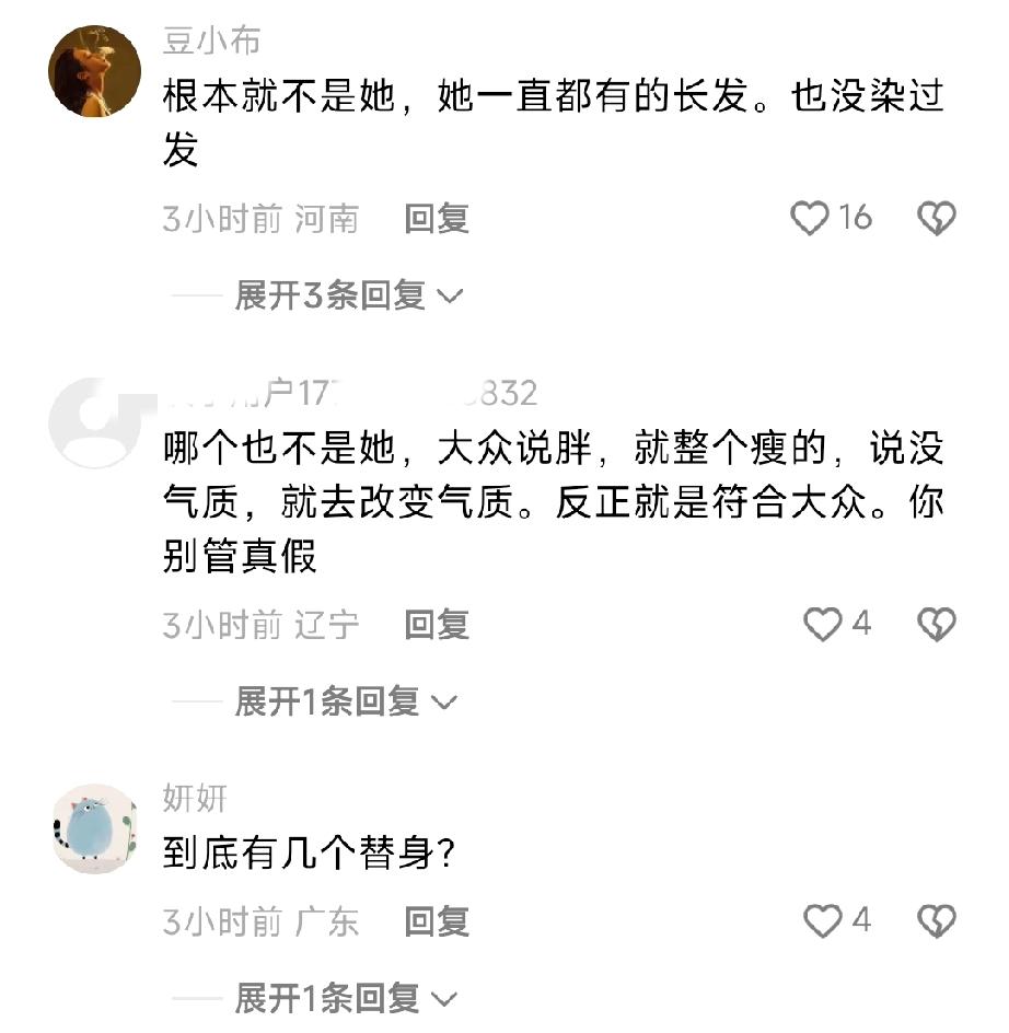 有人说章子怡一直都是长发,也不爱染发。还有人说上次明明脸更圆一点,肉肉的。