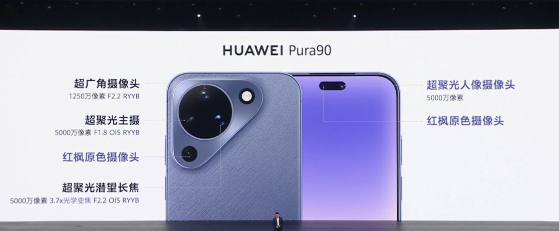 华为 Pura 90 标准版影像配置:前置 50MP 超聚光人像摄像头 + 红枫