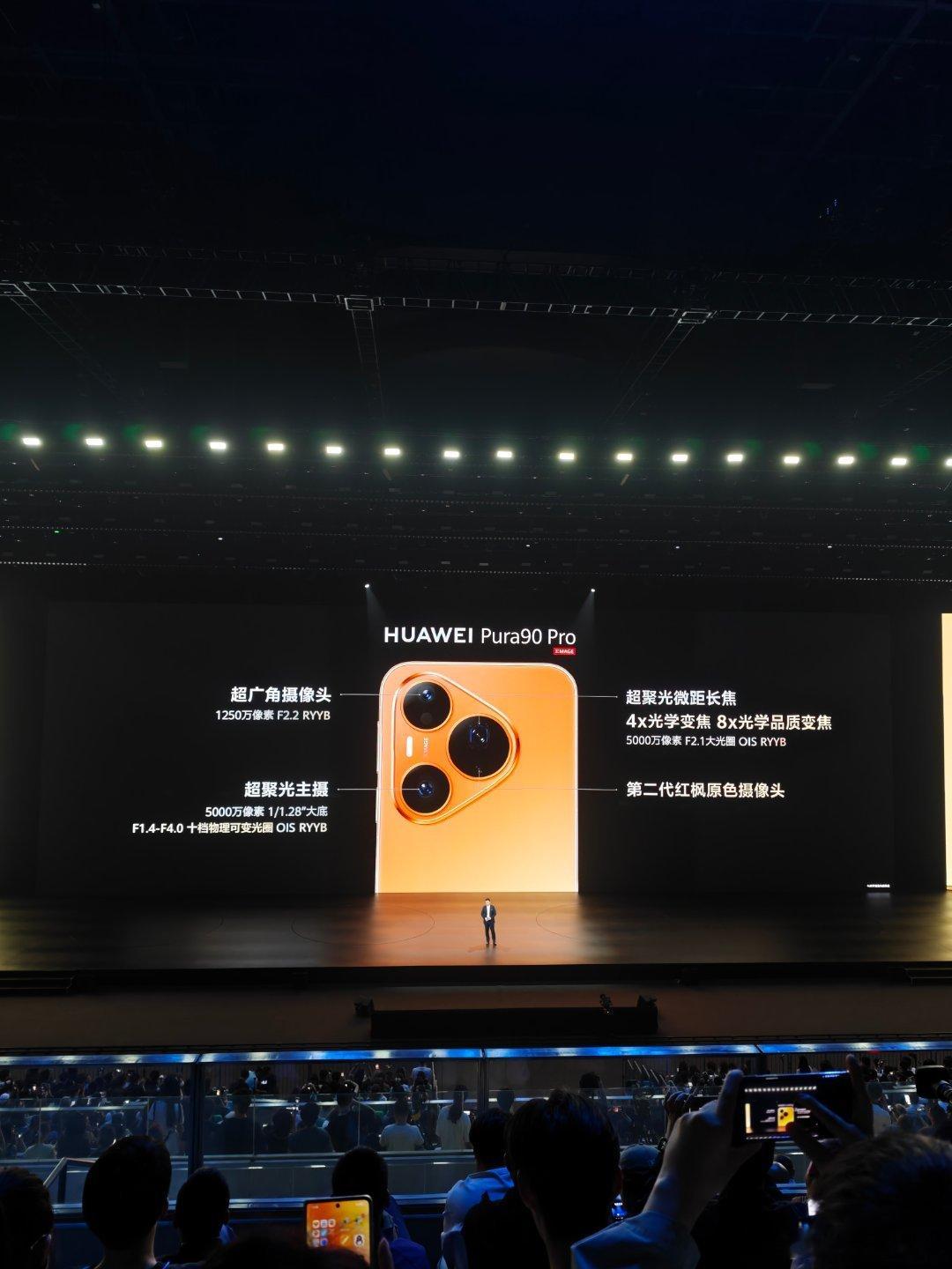 华为Pura 90 Pro:6.6英寸直屏,麒麟9030S,5000万1/1.28" f/1.4-4.0十档可变 OIS RYYB主摄,1250万像素f/2.2 RYYB超广角,5000万像素f/2.1 OIS RYYB 4X潜望长焦微距,第二代红枫原色摄像头,价格5499起。
