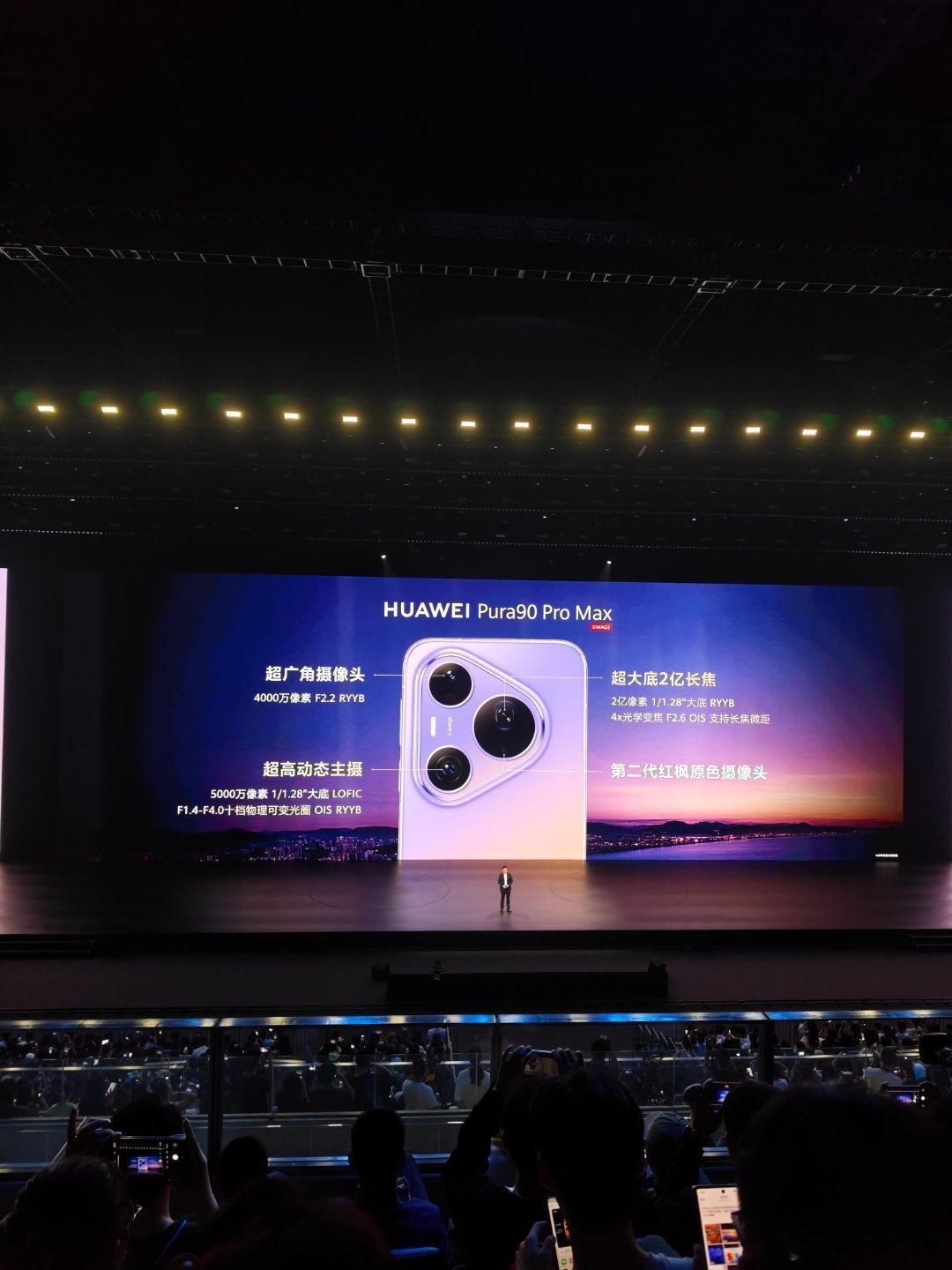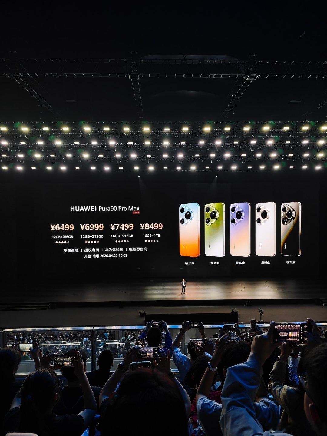 华为Pura 90 Pro Max:6.9英寸直屏,麒麟9030S,5000万1/1.28" LOFIC f/1.4-4.0十档可变 OIS RYYB主摄,4000万像素f/2.2 RYYB超广角,2亿像素1/1.28" f/2.6 OIS CIPA 7.0 RYYB 4X 潜望长焦微距,第二代红枫原色摄像头,双色渐变金属中框,抗反光耐刮昆仑玻璃,价格6499起。