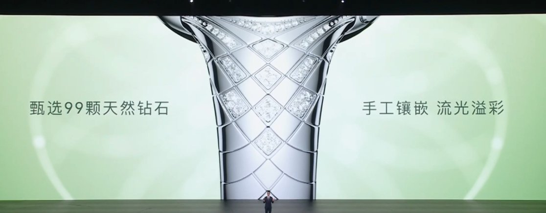 华为非凡大师首款珠宝智能腕表,全表镶嵌了 99 颗天然钻石,蓝宝石表镜