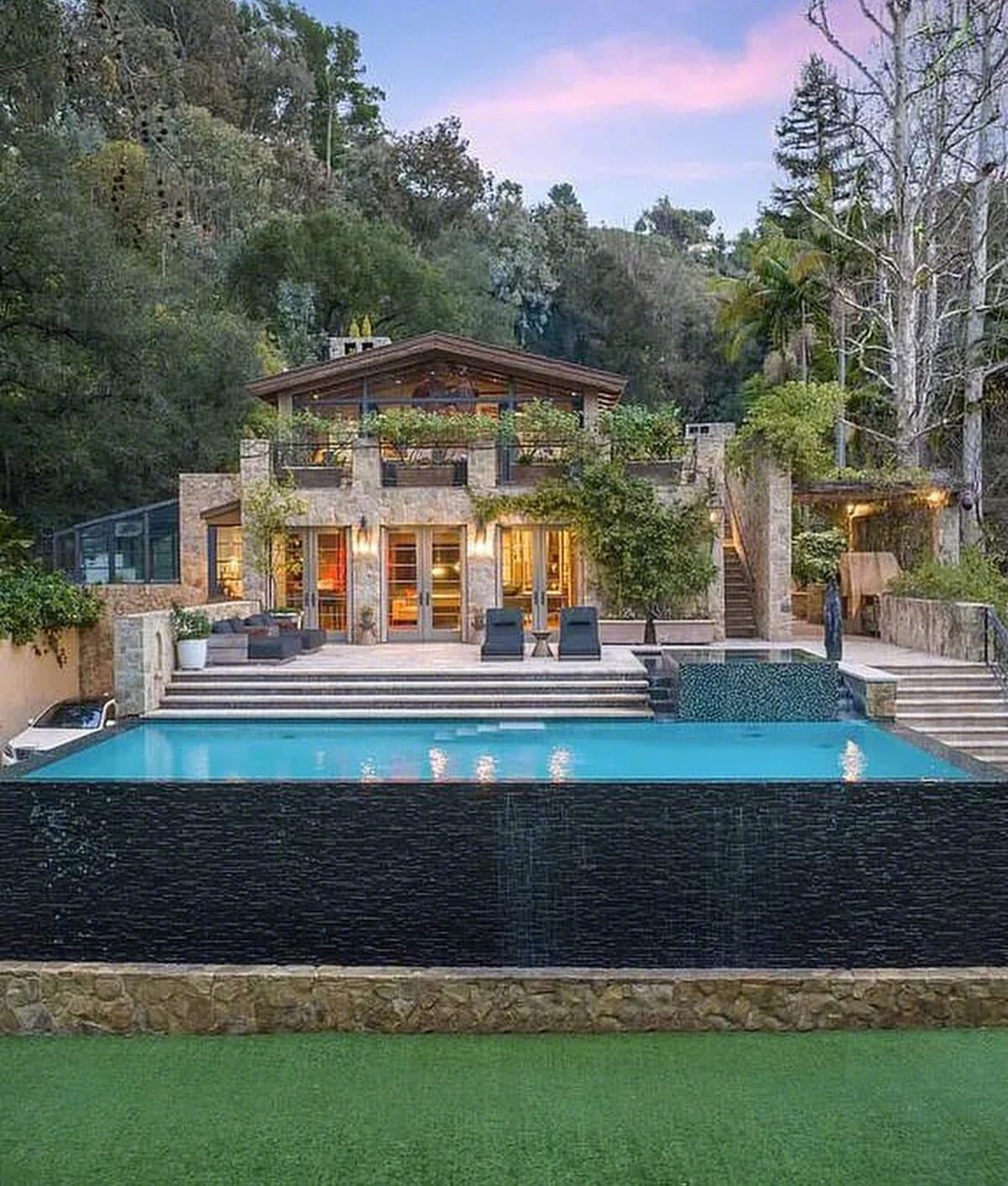 这座庄园最初由传奇建筑师 Samuel Marx 设计,后被重新打造为独一无二的法式乡村风格居所,巧妙融合了石材与木材元素,与自然景观浑然一体。主层设有挑高天花板的客厅、吧台、壁炉,以及通向石质露台的钢制门窗。其他空间包括正式餐厅、带内置早餐区和石壁炉的专业级厨房,以及带吧台的大型家庭/娱乐室,通往设有三边无边际泳池的露台。所有房间都可通过宽阔露台欣赏到令人惊叹的景观。