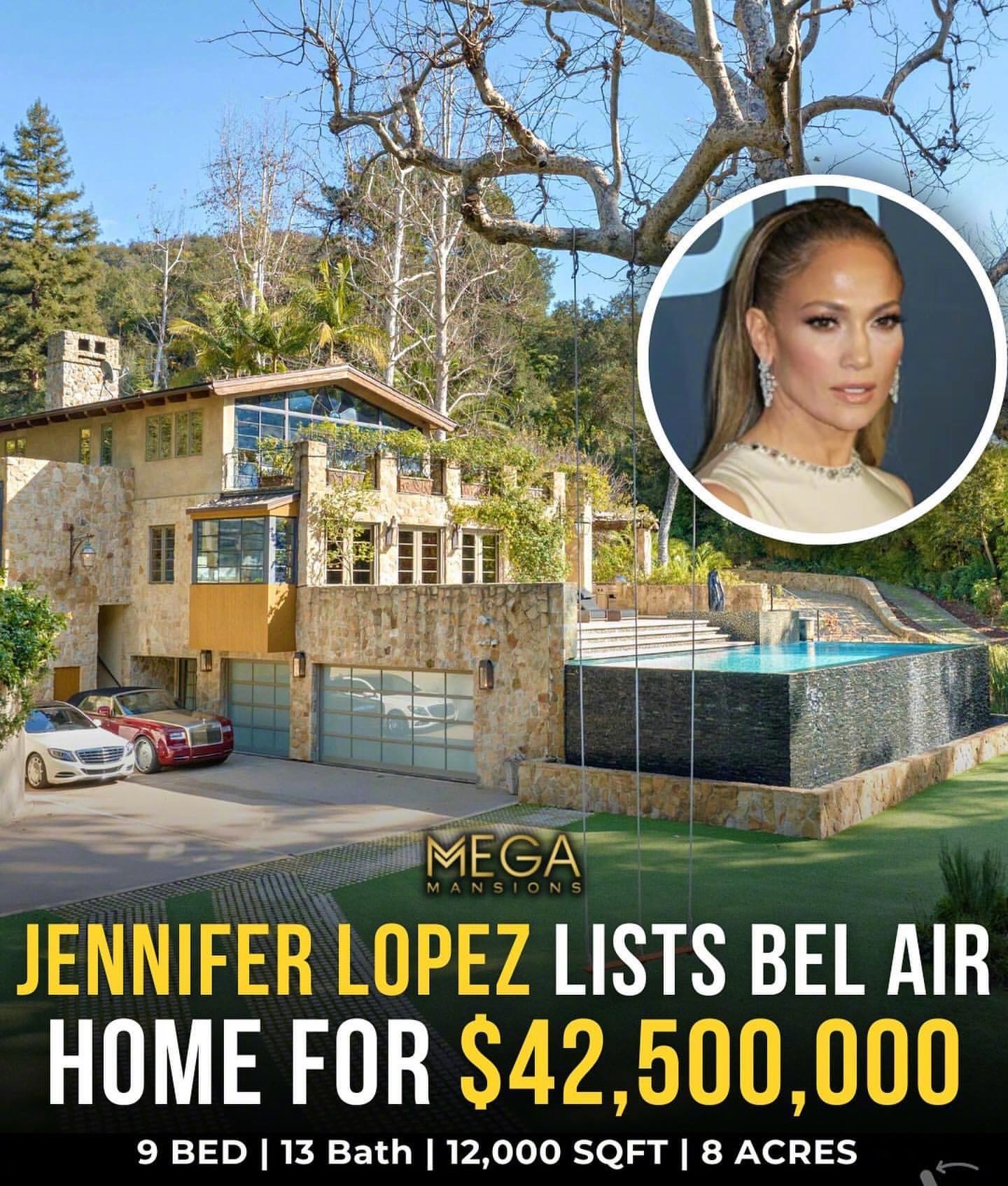 詹妮弗洛佩兹Jennifer Lopez 挂牌出售她她早年买的一栋位于 Bel Air 的华美庄园,售价 4,250 万美元。这处罕见的房产坐落在 Bel Air Hotel 附近,占地约 8 英亩,隐秘地藏身于大门之后,环境壮丽。