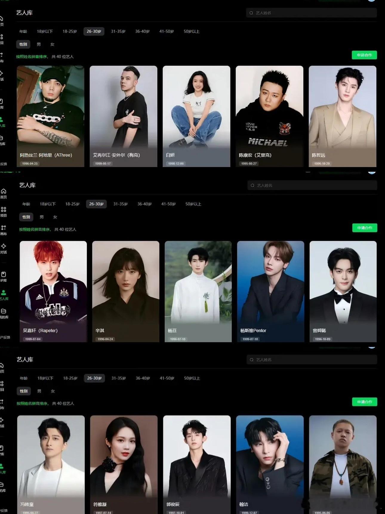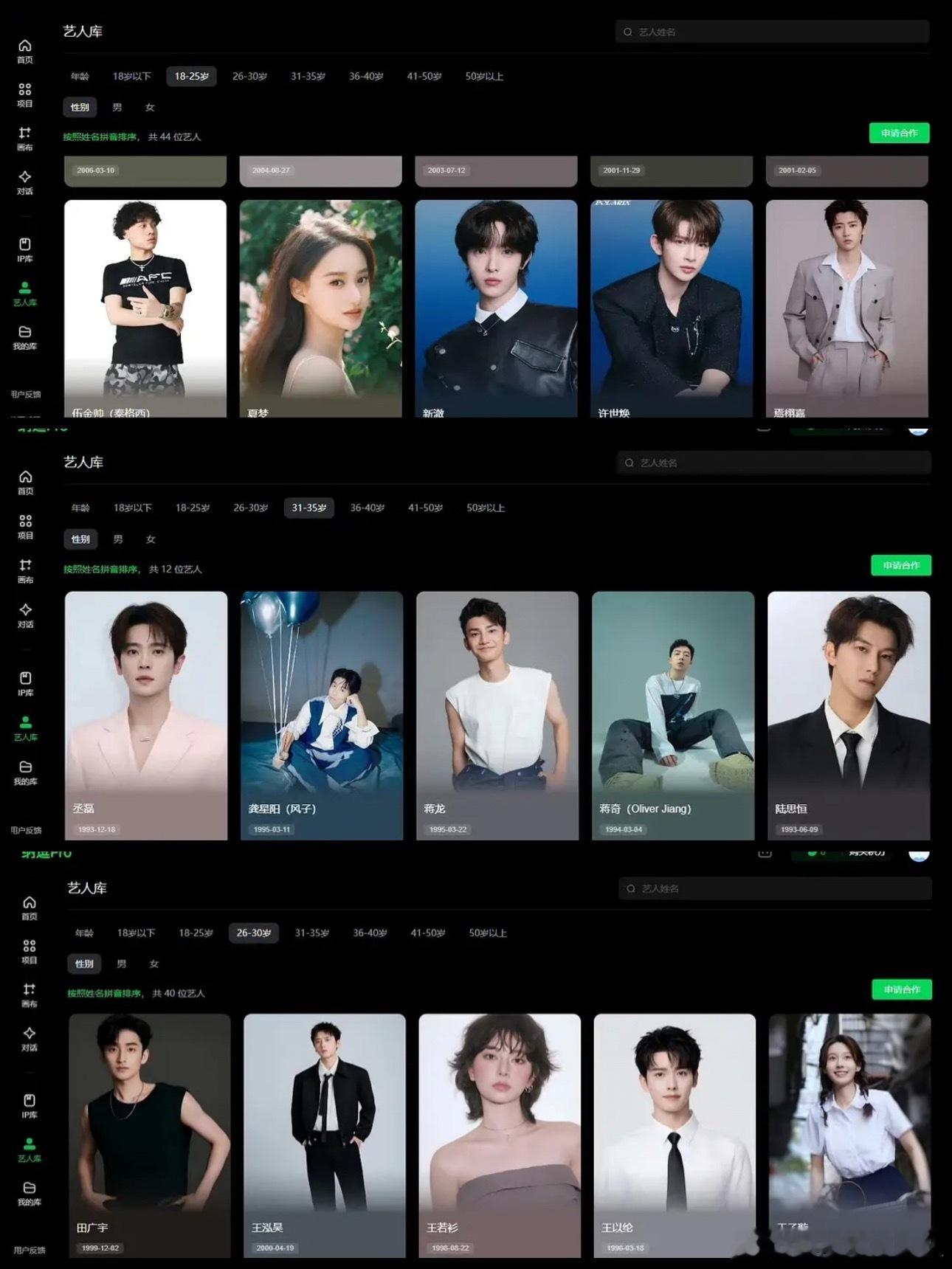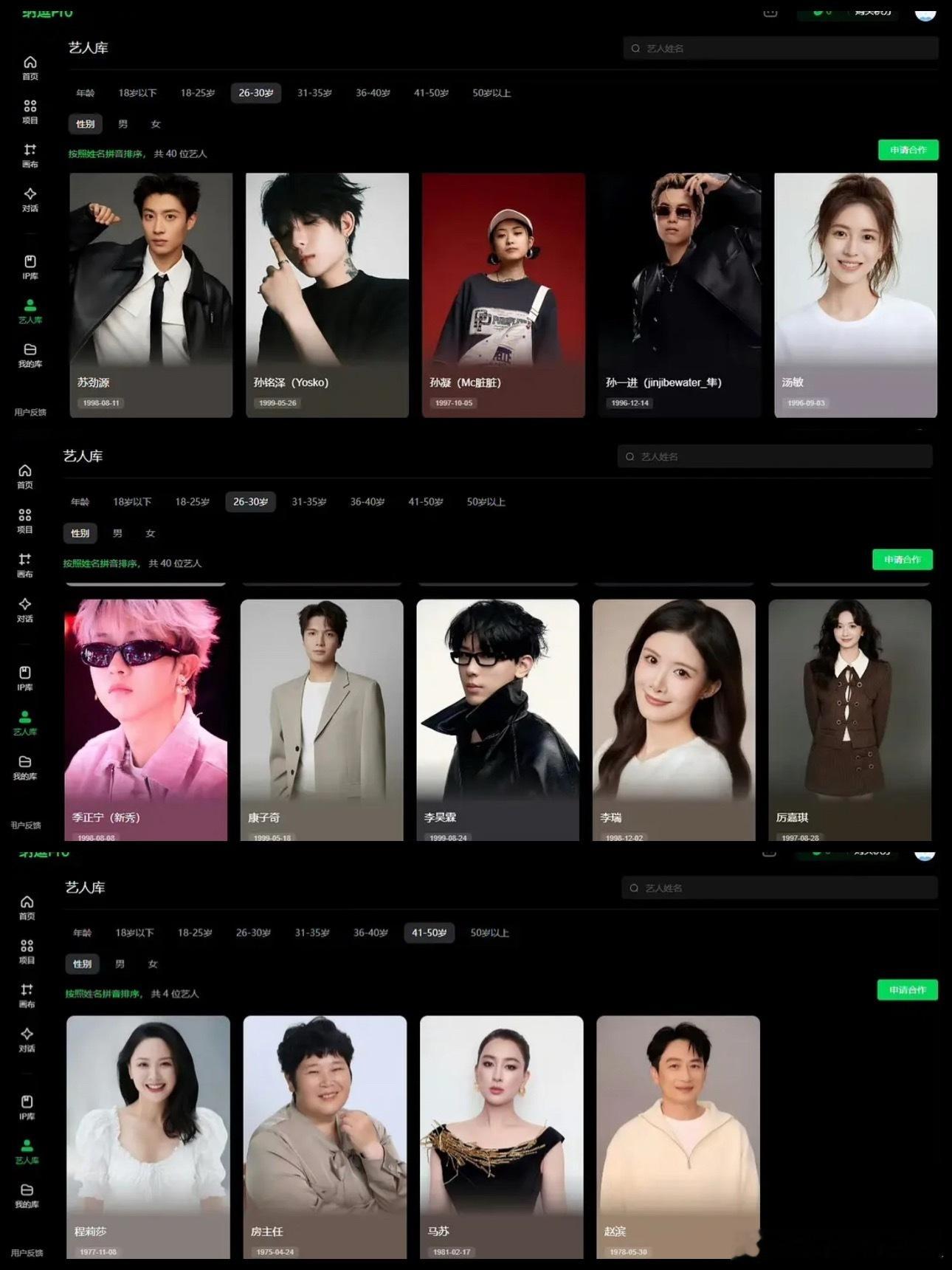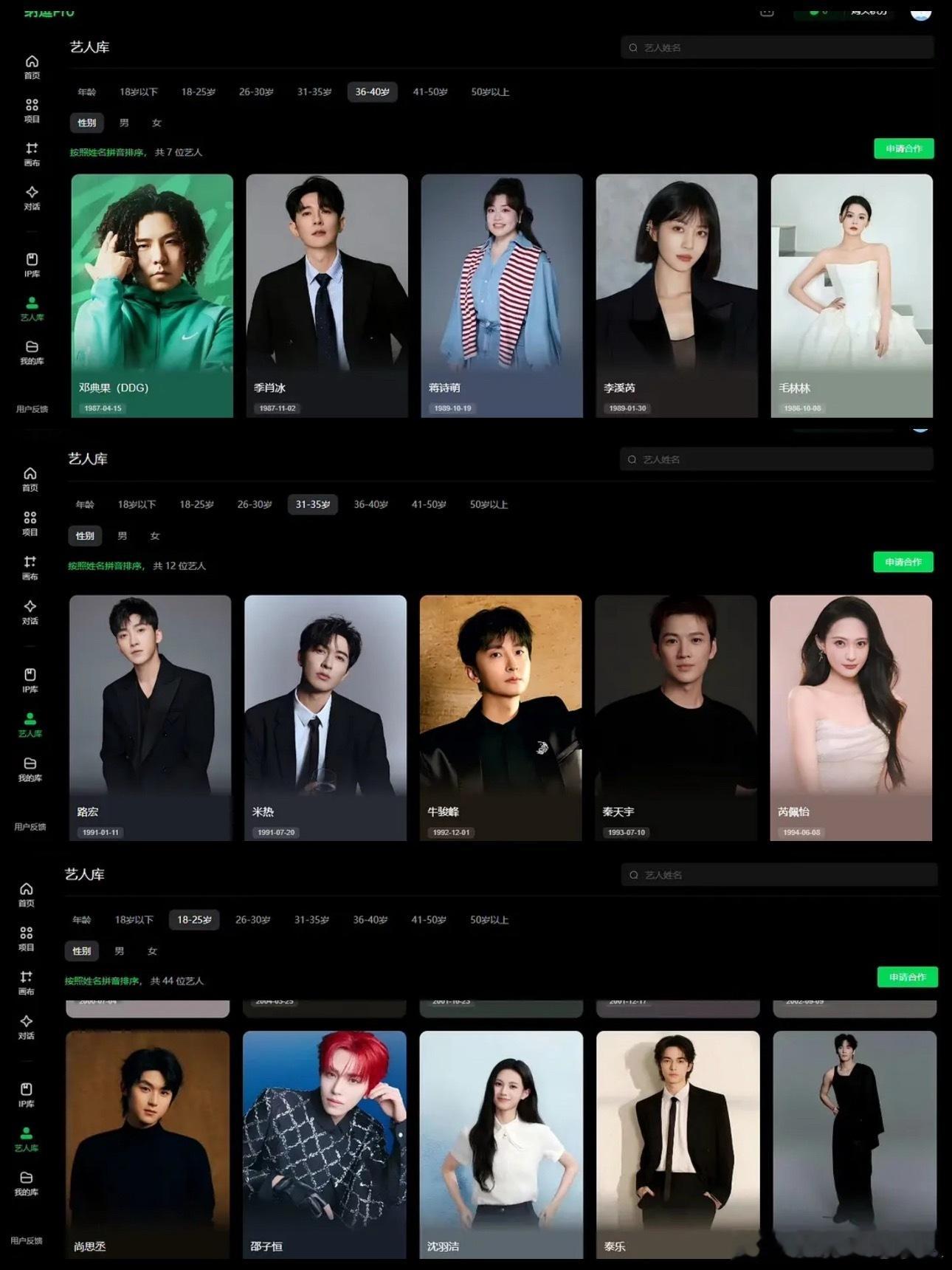 网友上传了平台内嵌版本的AI演员库,眼熟的演员还挺多:陈哲远、曾舜晞、郭俊辰、夏梦、焉栩嘉、丞磊、蒋龙、陆思恒、王以纶、王子璇、翟潇闻、赵一博、林子烨、季肖冰、蒋诗萌、毛林林、李溪芮、米热、牛骏峰、沈雨洁、毛林林、马苏等。