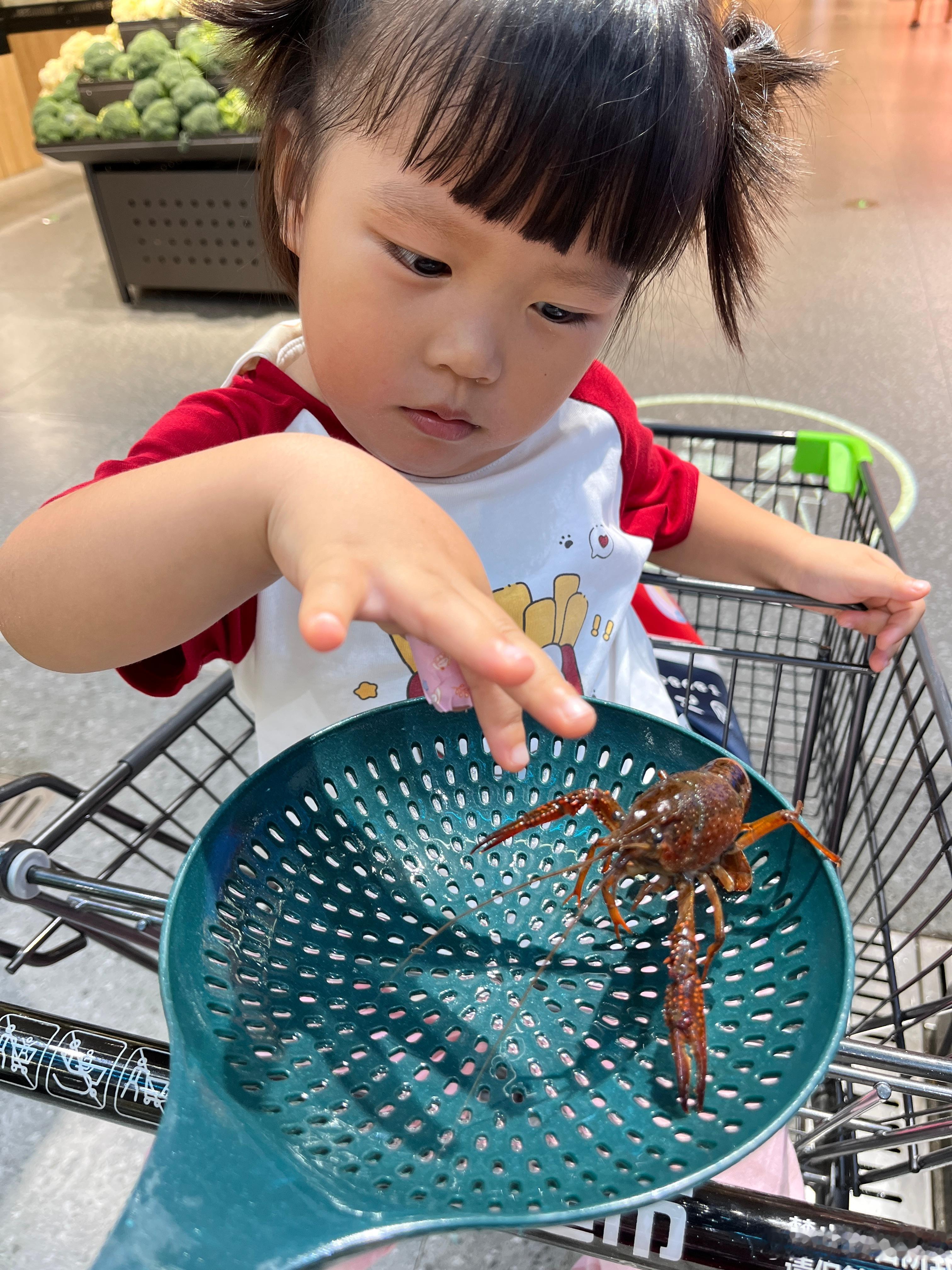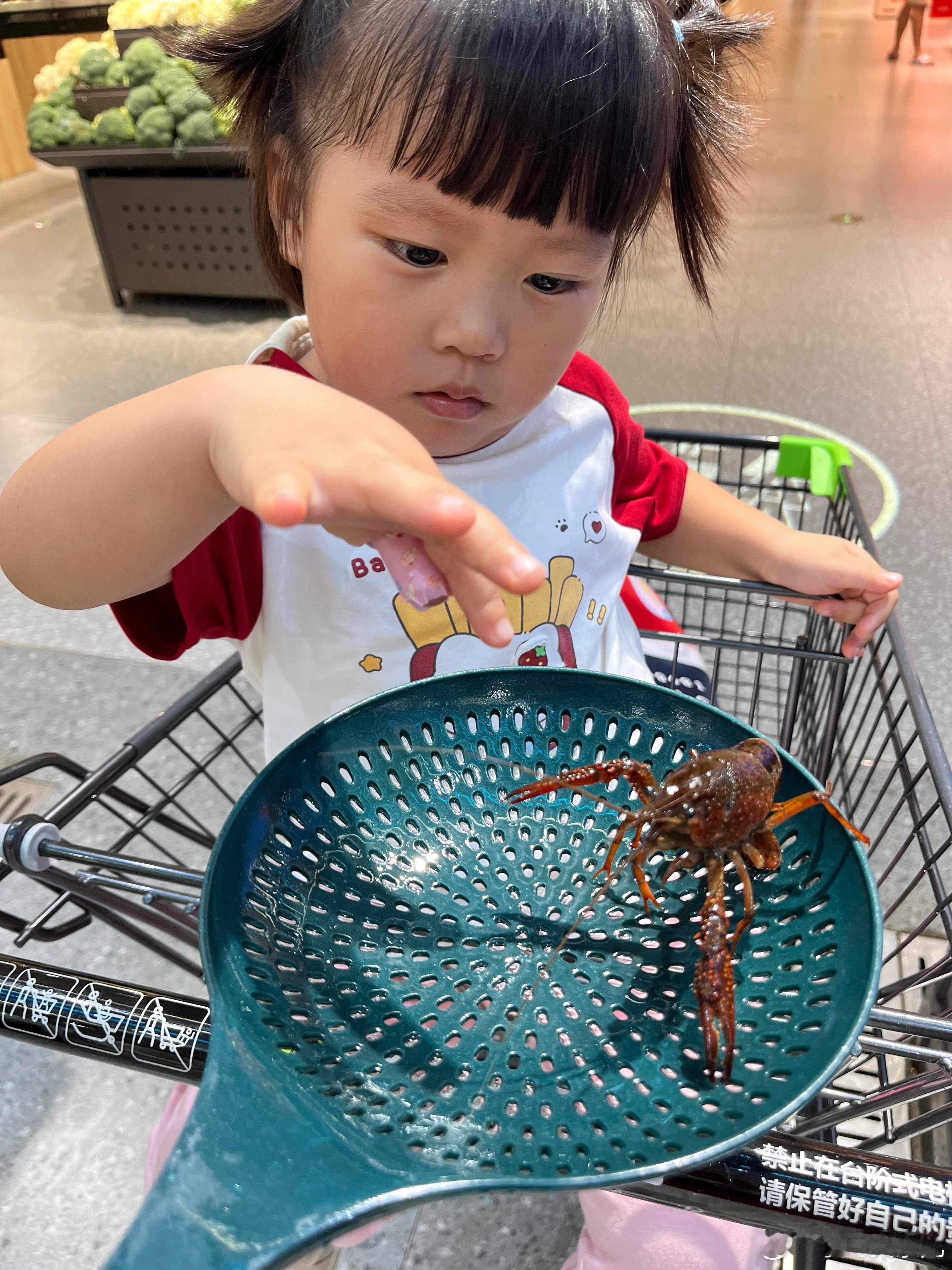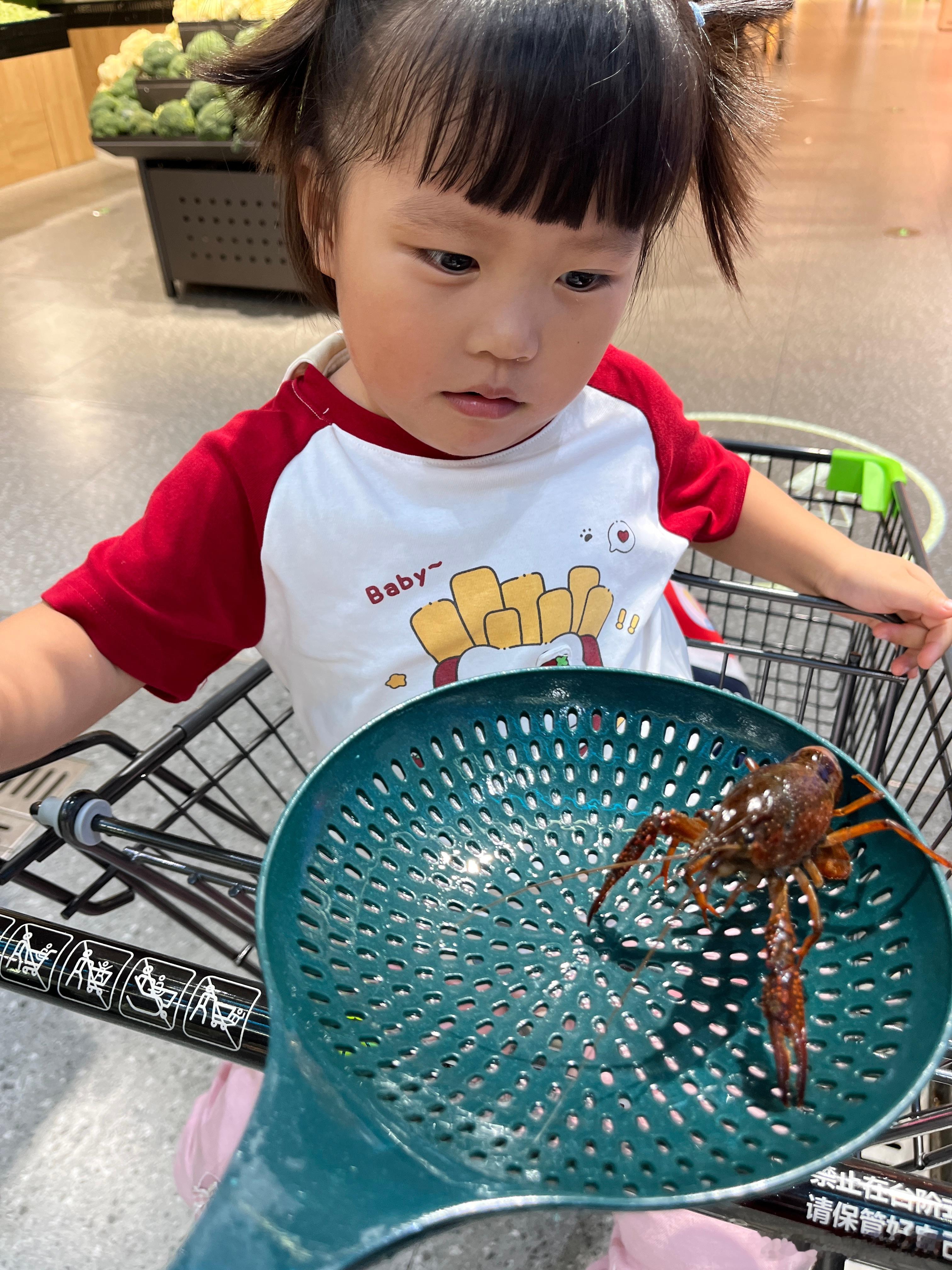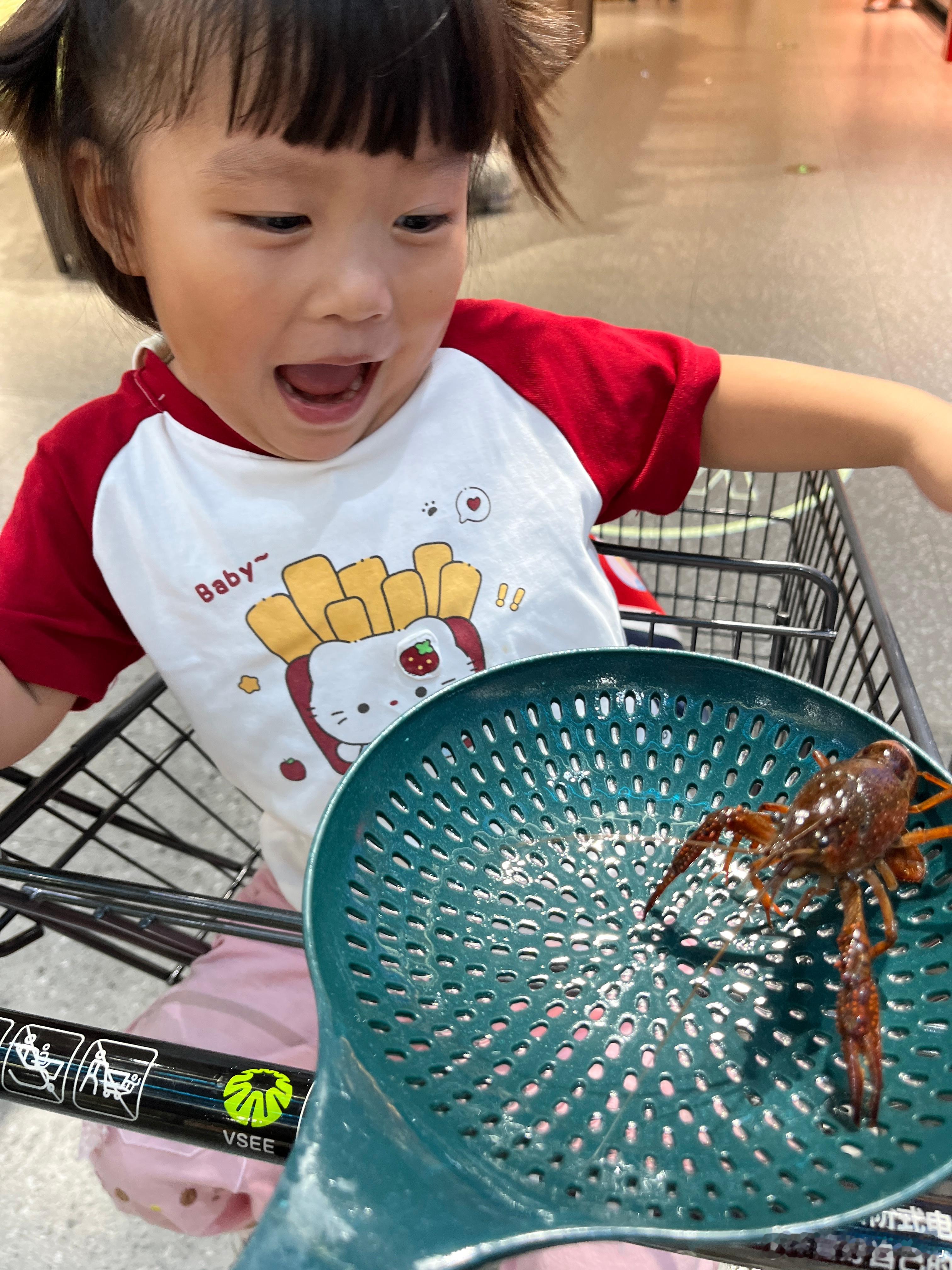 叫我抓小龙虾给她看看,真是又菜又爱玩,下雨,没去公园,来超市转一圈。