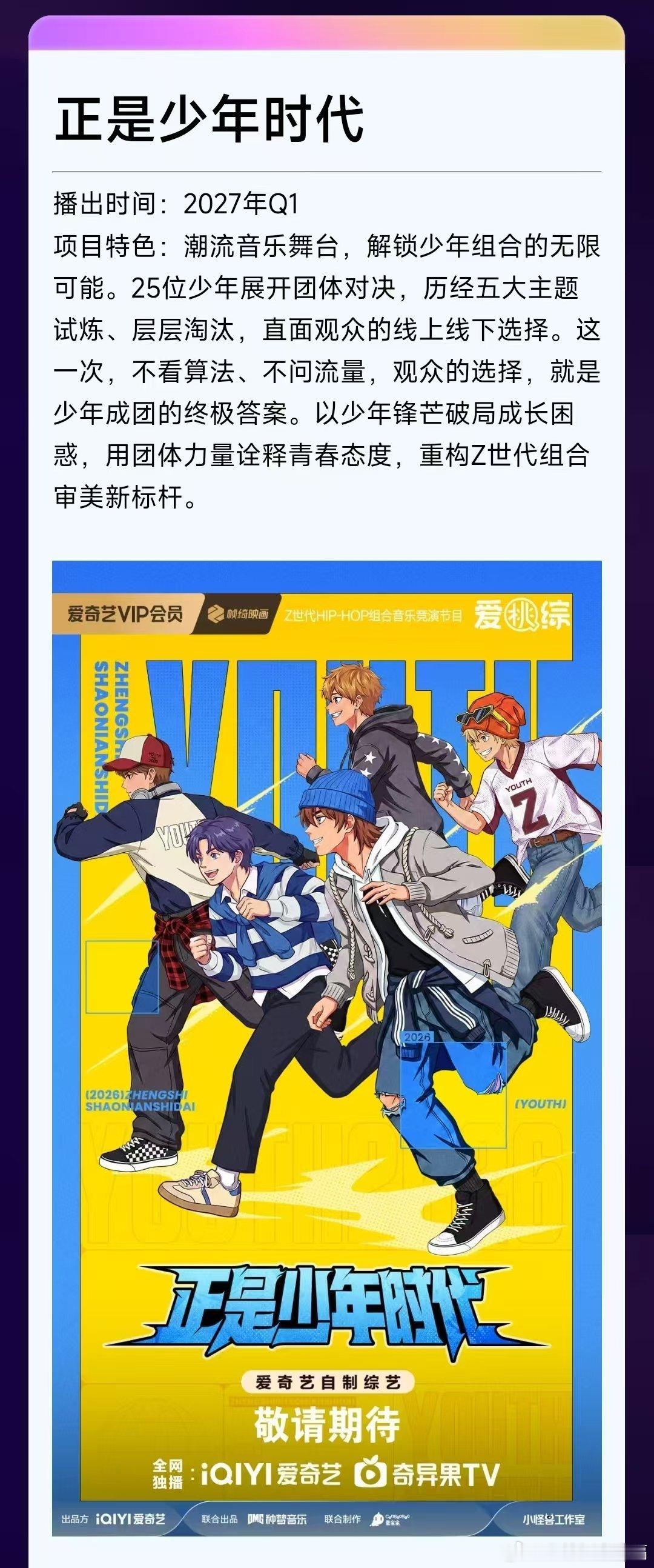 爱奇艺综艺把赛道全占了行团全员集结继续疯玩边疆,音乐舞台解锁少年无限可能,还有美食竞技带社会话题,这赛道布局也太全面了吧!爱奇艺综艺赛道还是太全面了2026爱奇艺世界大会