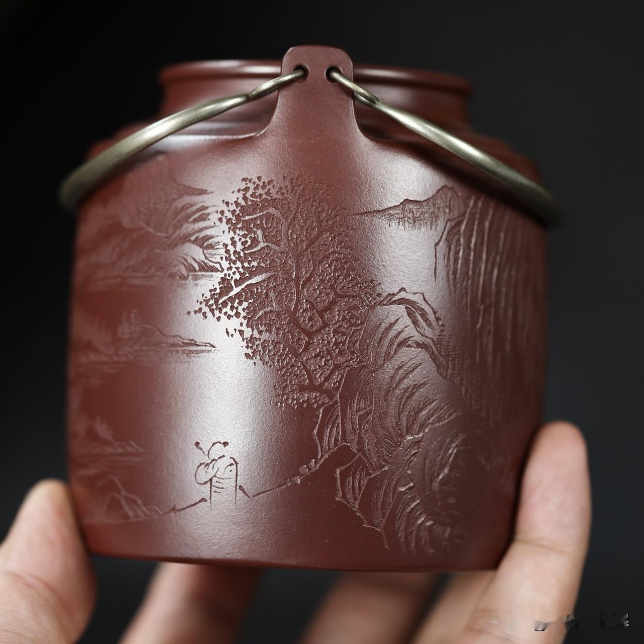 牛盖洋桶丨大品重器|研高作品 容量400cc丨原矿紫朱泥 初见此壶,古雅之气