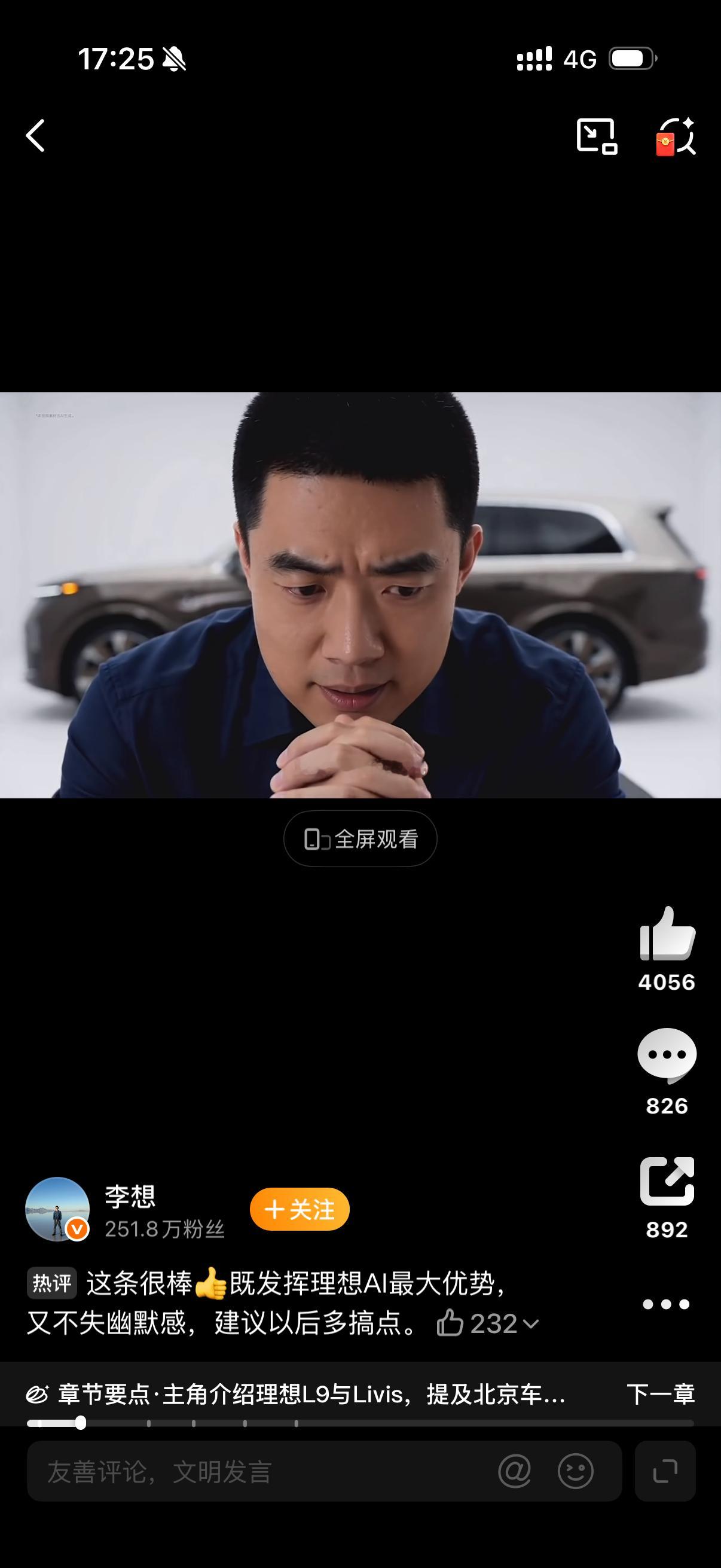 理想L9Livis车展首秀李想C位出道李想这条视频的创意其实是很出圈的以至于一些部分让网友讨论是本人还是AI细节上的表现来看AI的痕迹不少但是你说没有李想的思想吗?也有