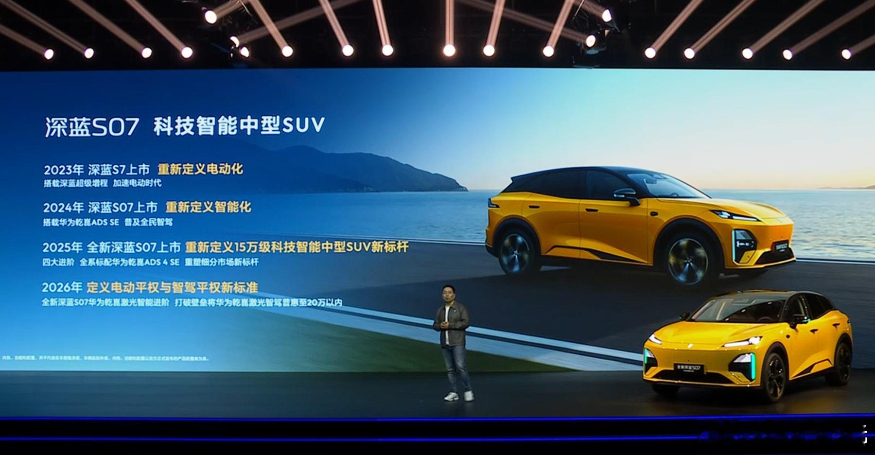 深蓝S07把华为乾崑激光价格打下来了深蓝S07华为乾崑激光版正式上市,起步价15