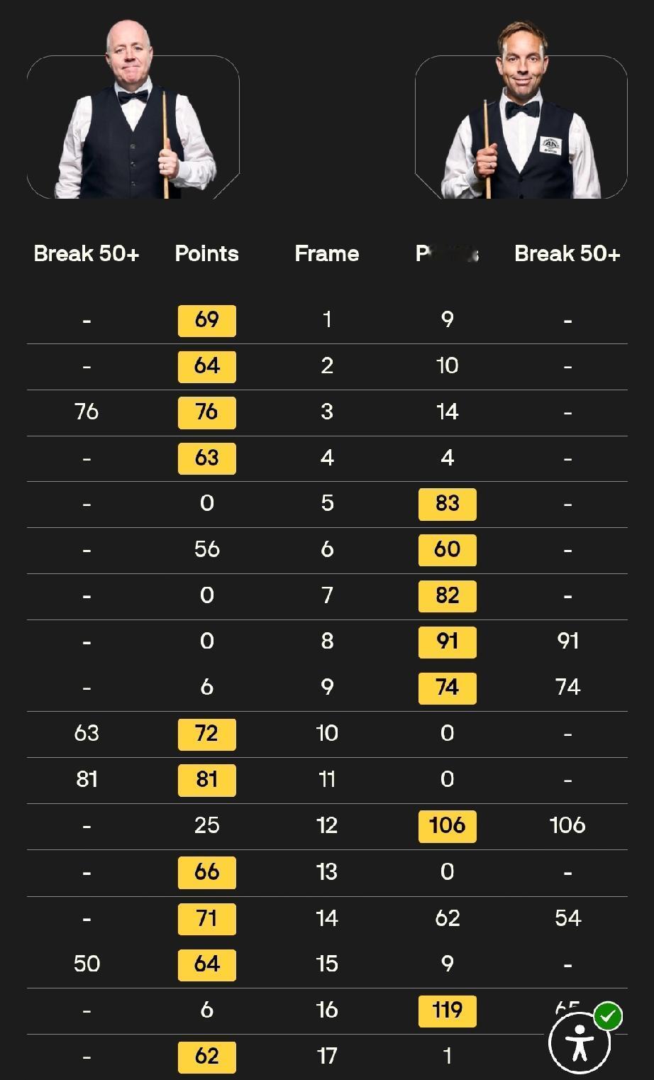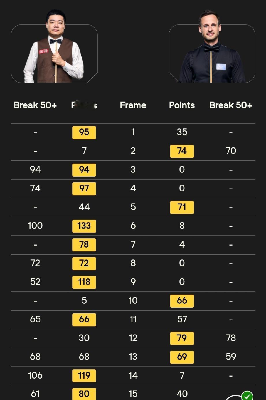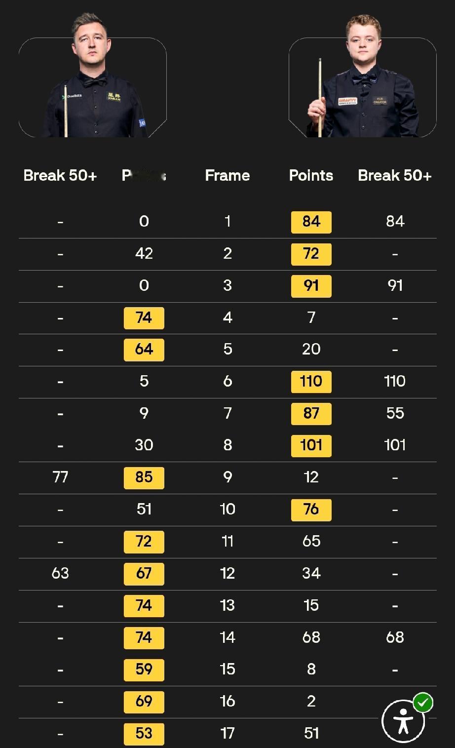 ​1. 赵心童 10-7 利亚姆·海菲尔德